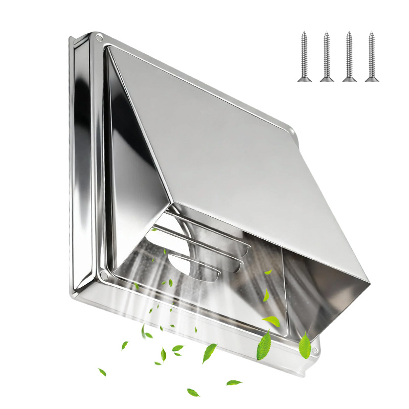 304 ステンレス鋼外壁フロントガラスレインカバー空気出口キッチン排気ファン排気ファン排気口キャップ正方形