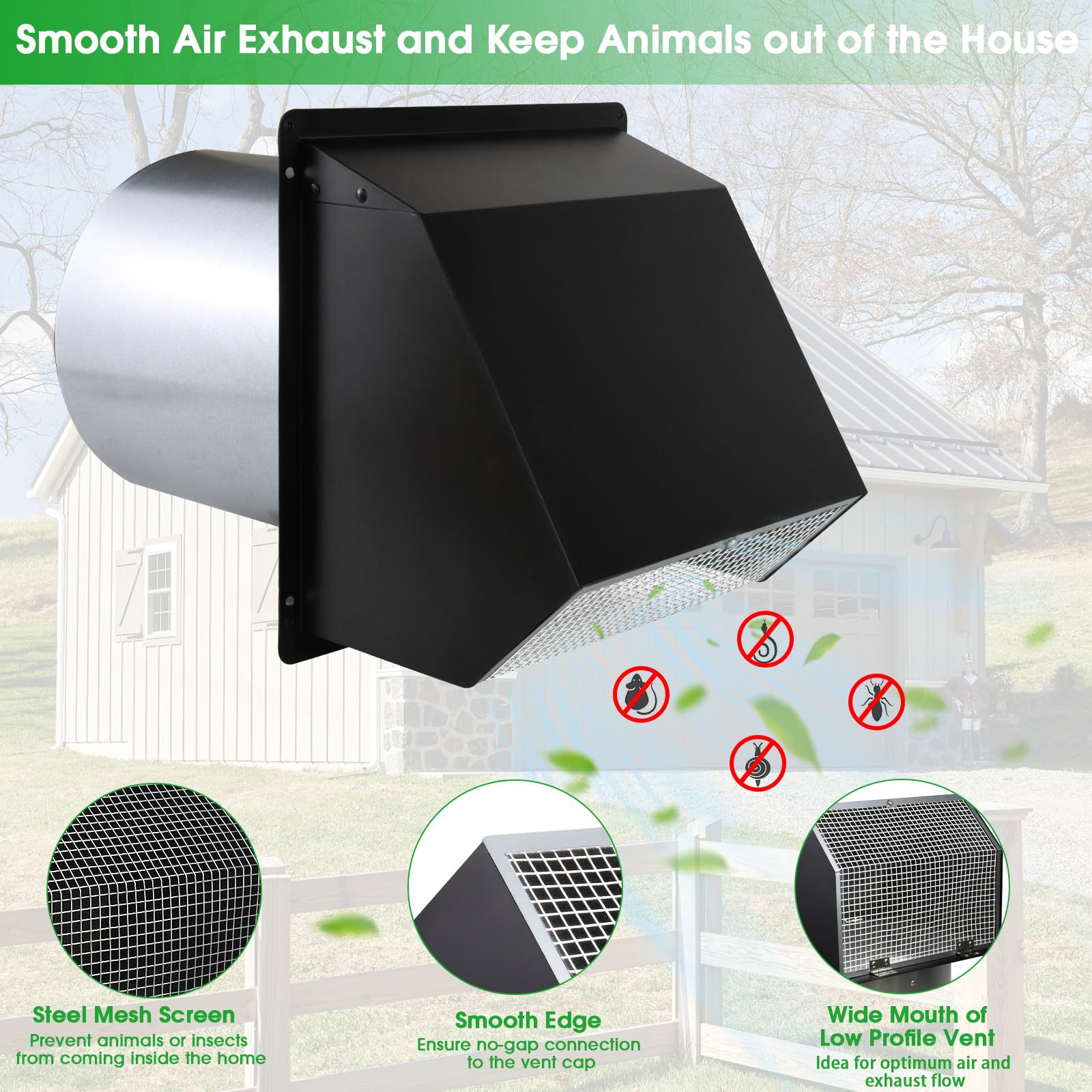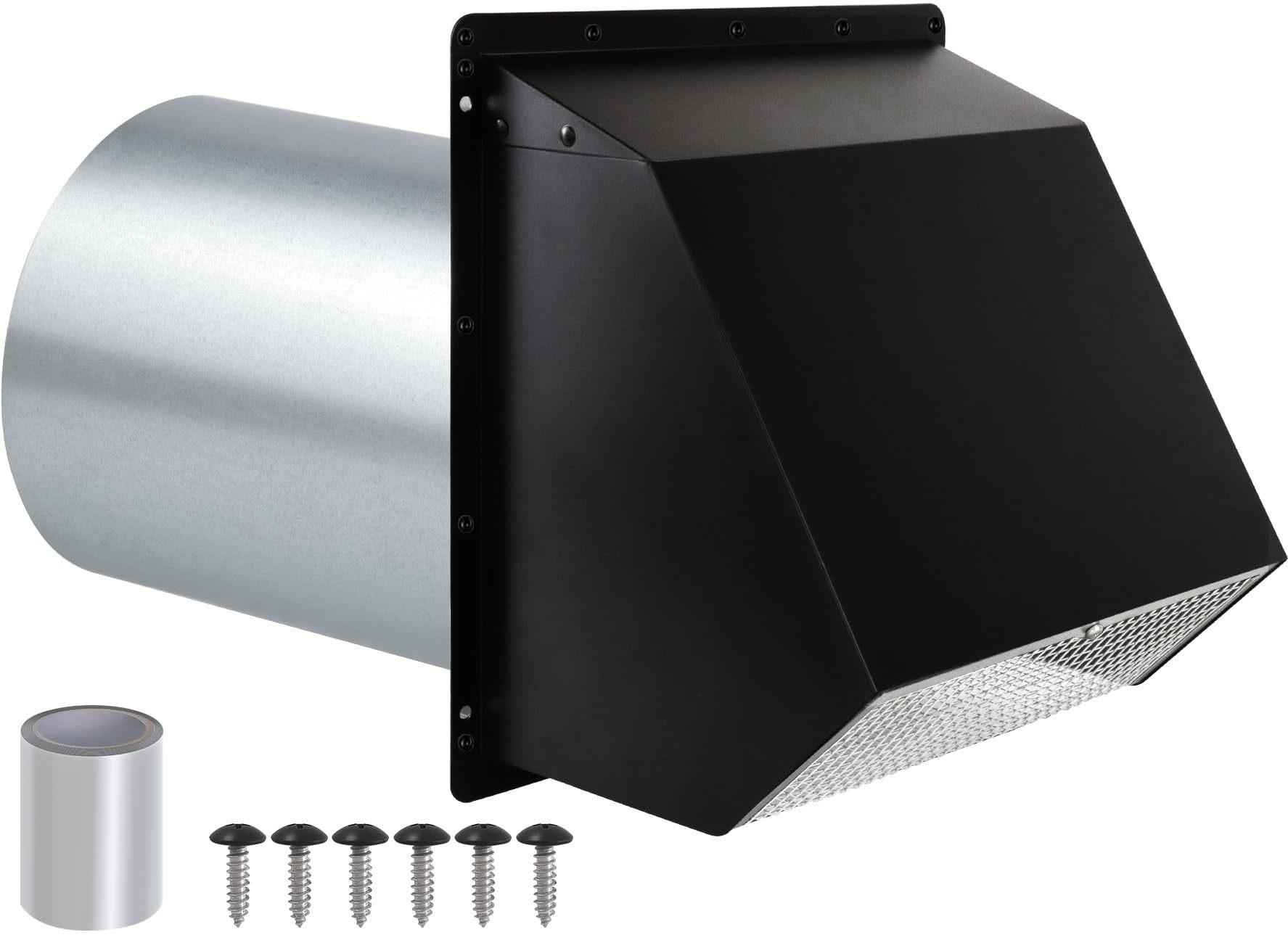 シールドとダンパー付きフード付き壁取り付け通気口 (No. 8inch、ブラック)