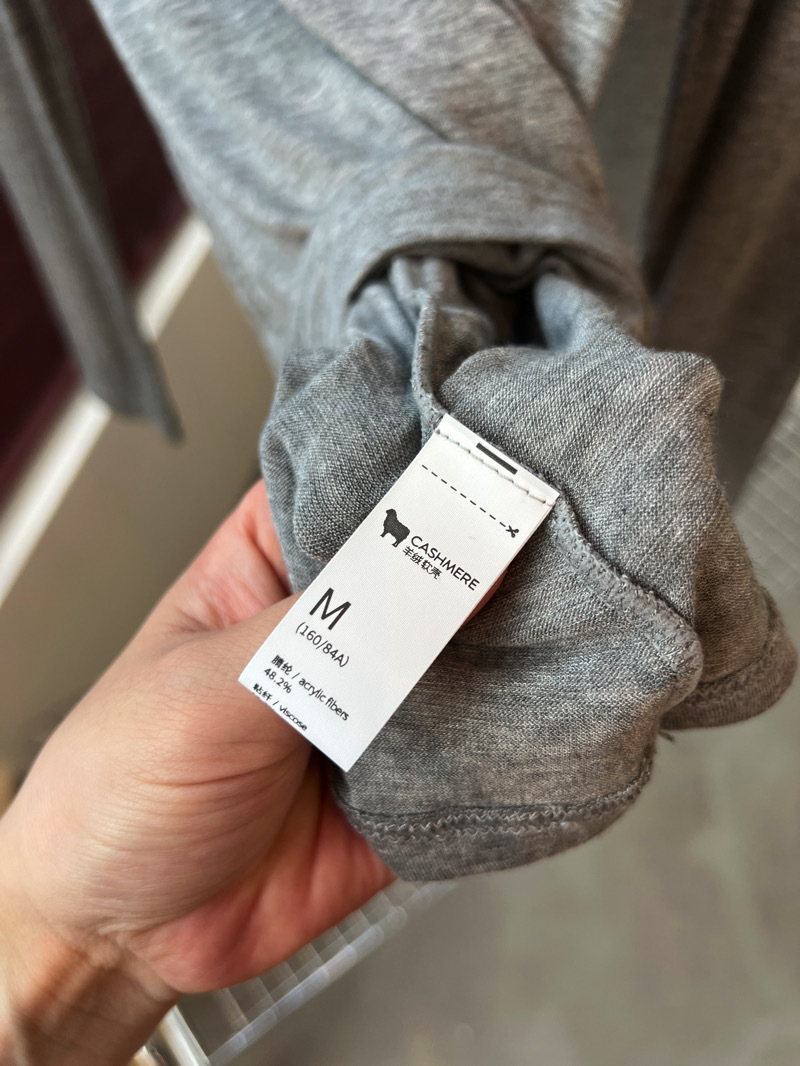 面料:腈纶48.2% 粘纤43.7% 氨纶5.0% 山羊绒3.1%