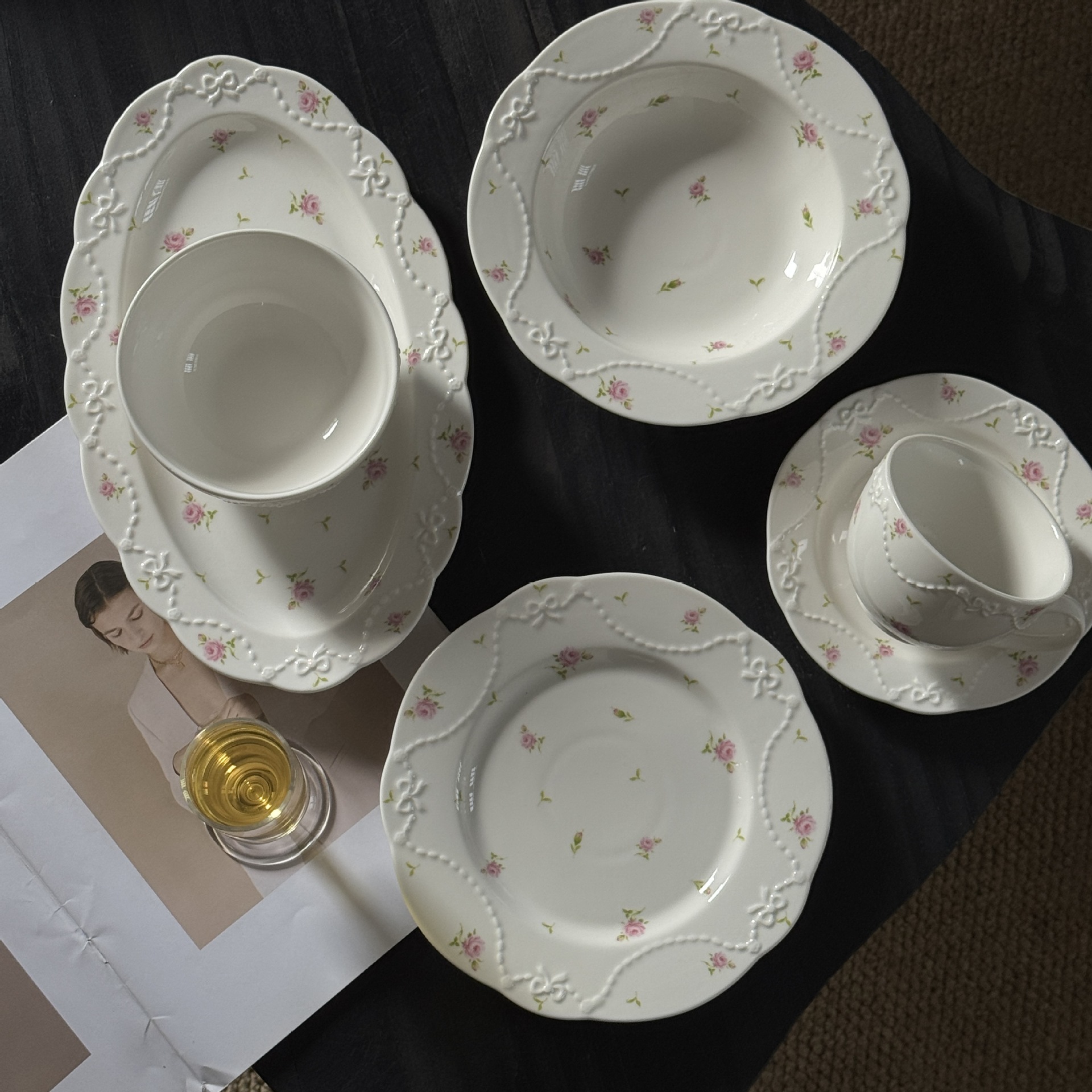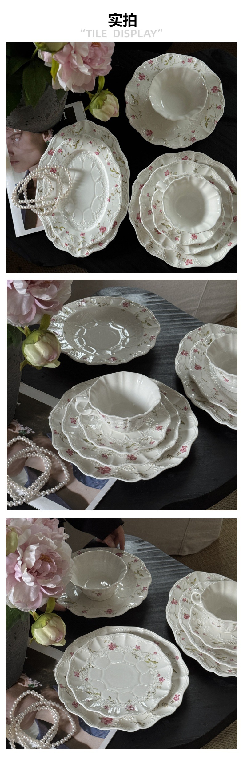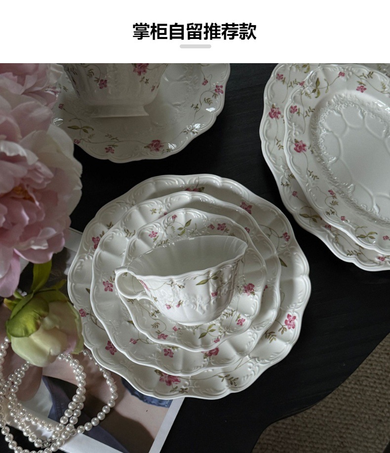 法式在逃公主绝美温柔浮雕花卉陶瓷餐盘碗杯盘子餐具套装现货批发