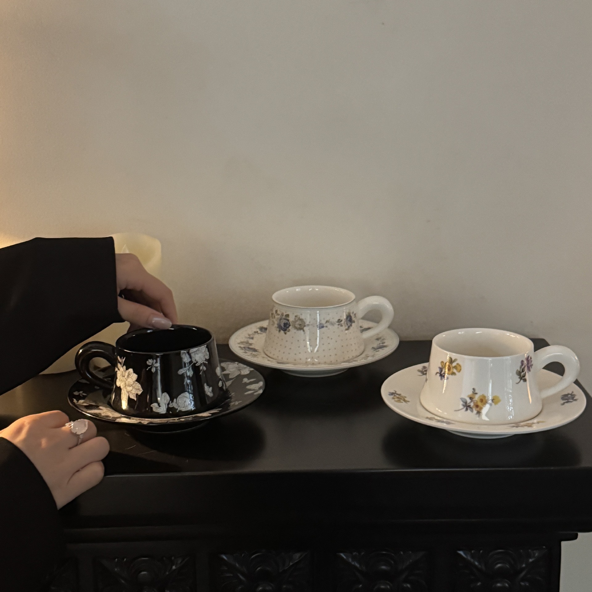 レトロマルチカラーヴィンテージカップとソーサーセラミックアフタヌーンティーカップとソーサーセットコーヒーカップラテカップとソーサー卸売