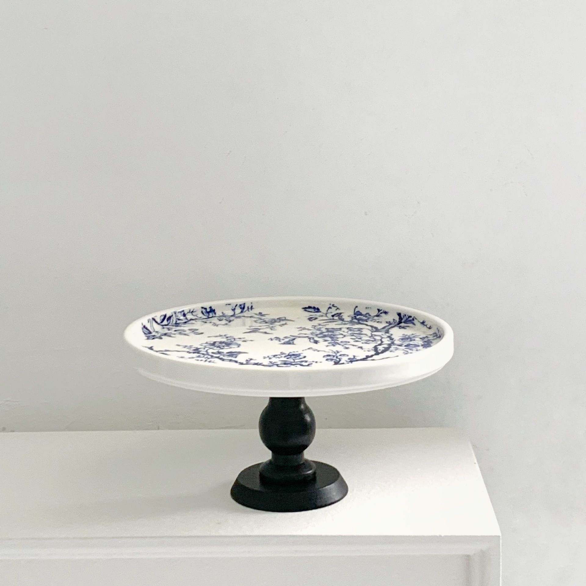 フランス青と木の足のデザートの皿は陶磁器のヴィンテージの清新な青い食事の皿のデザートの皿の現物の卸売りを収納します。