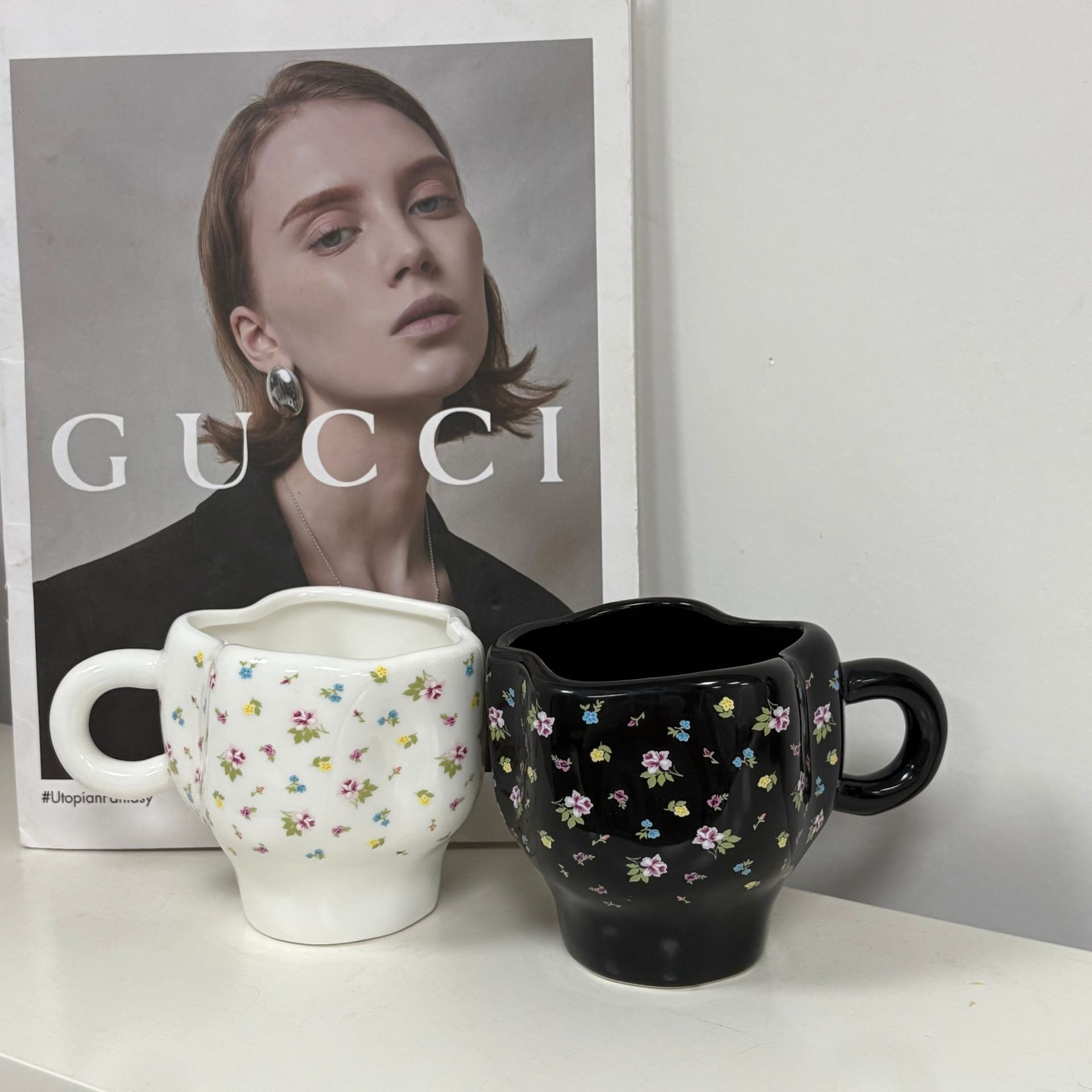 オリジナルデザインのレトロな椿手絞りカップセラミックウォーターカップコーヒーカップアフタヌーンティー高価値カップルのお土産