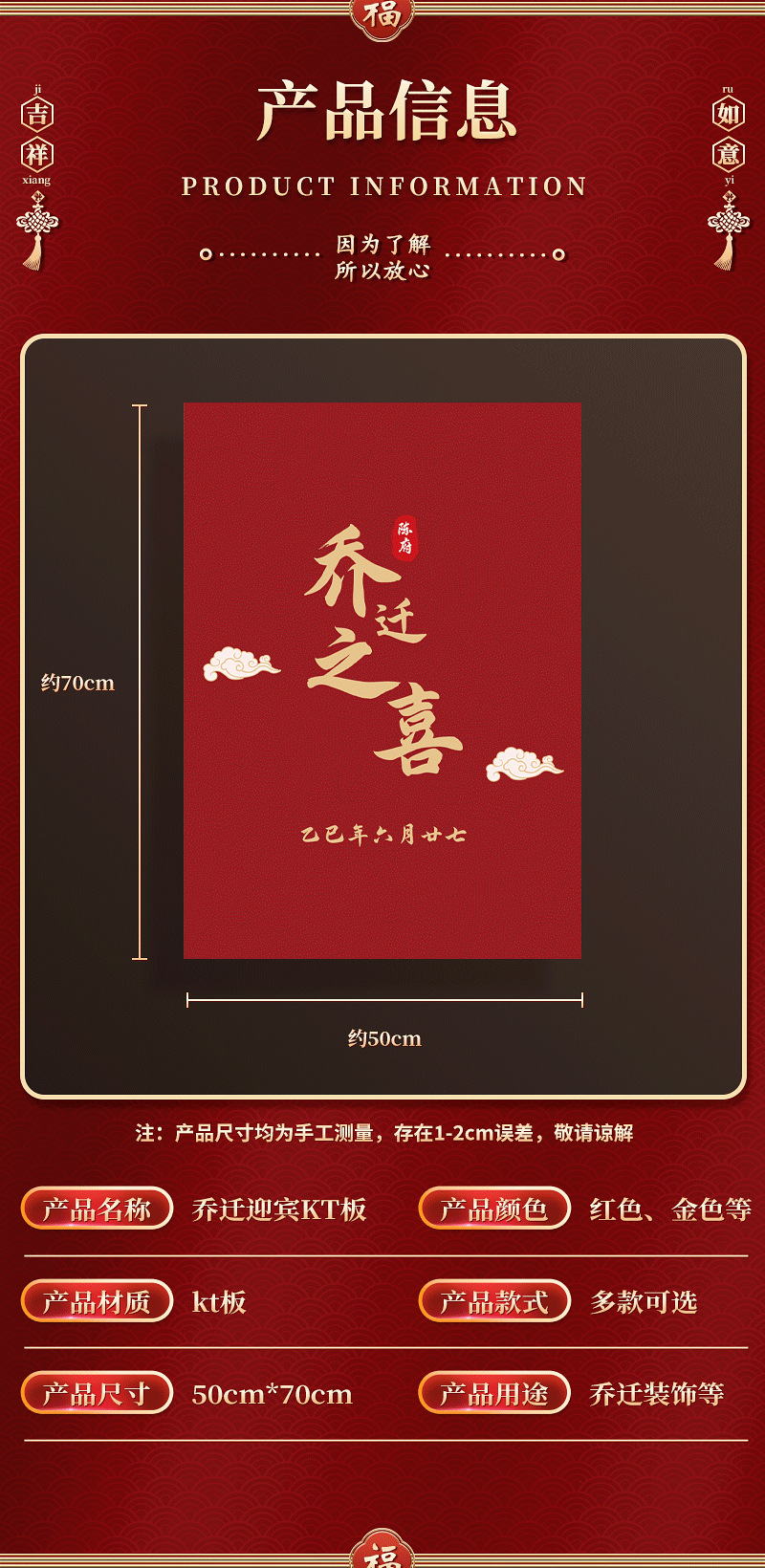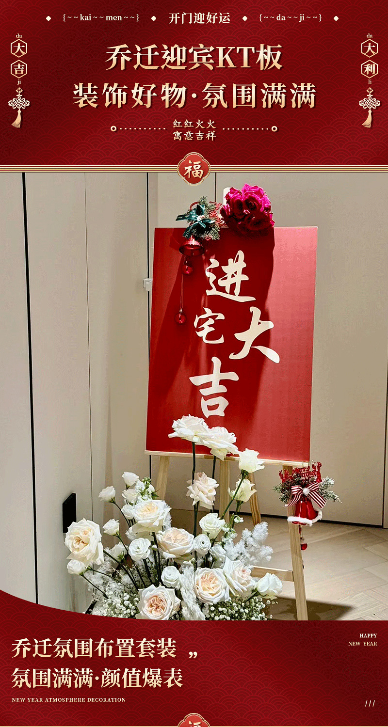 乔迁之喜KT板迎宾牌新居入宅进宅大吉装饰搬新家仪式摆件道具乔迁