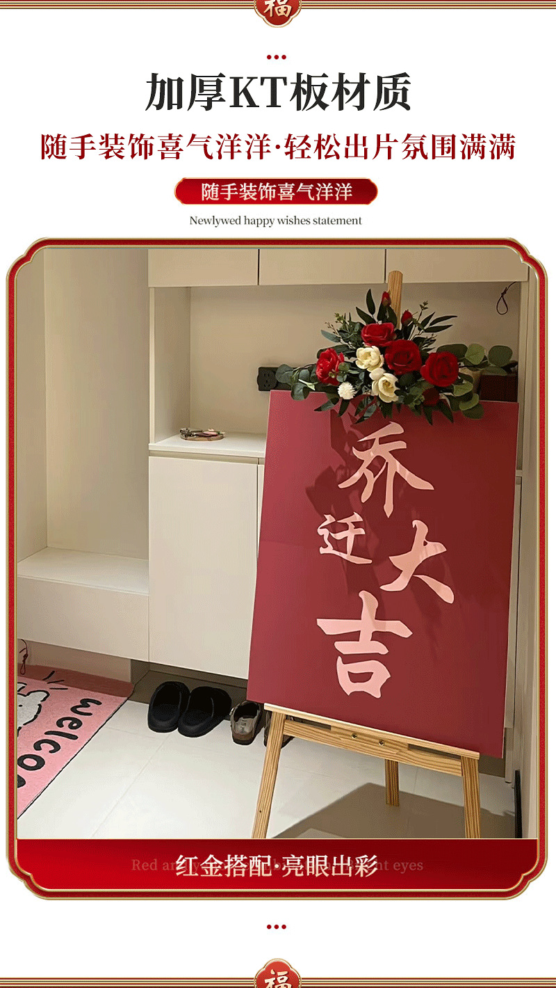 乔迁之喜装饰迎宾牌搬家入宅仪式用品布置新居大吉KT板立牌