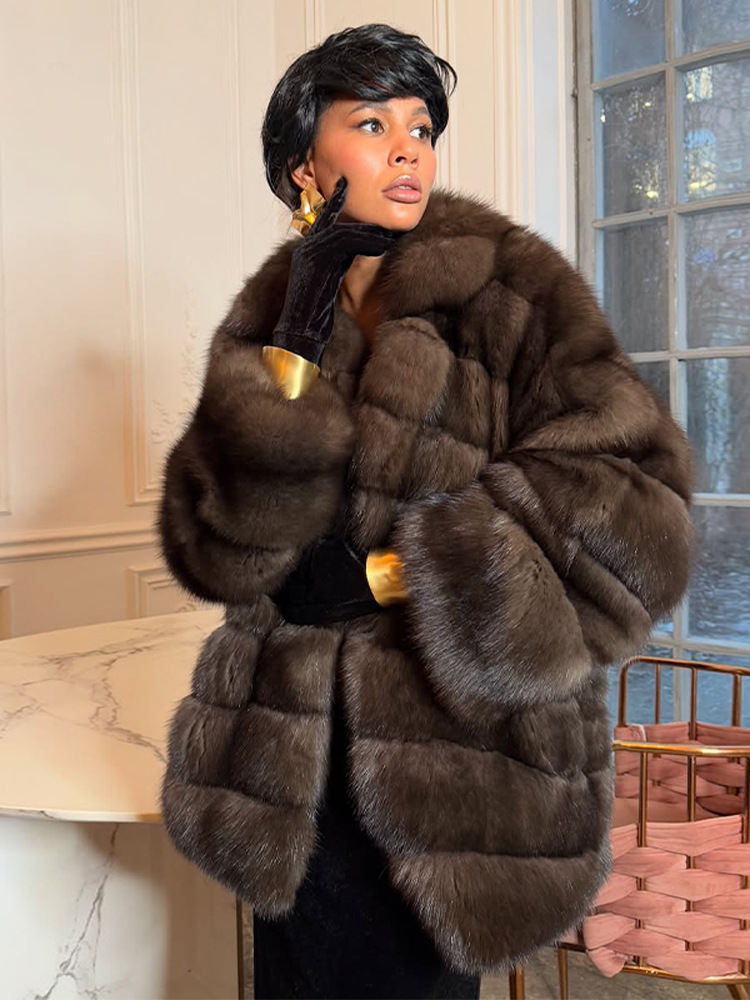 レディース ファーコート ロシア製 暖かい 農夫風 イミテーション セーブル スーツカラー 2025年モデル おしゃれ 高級感 ミンクコート 冬
