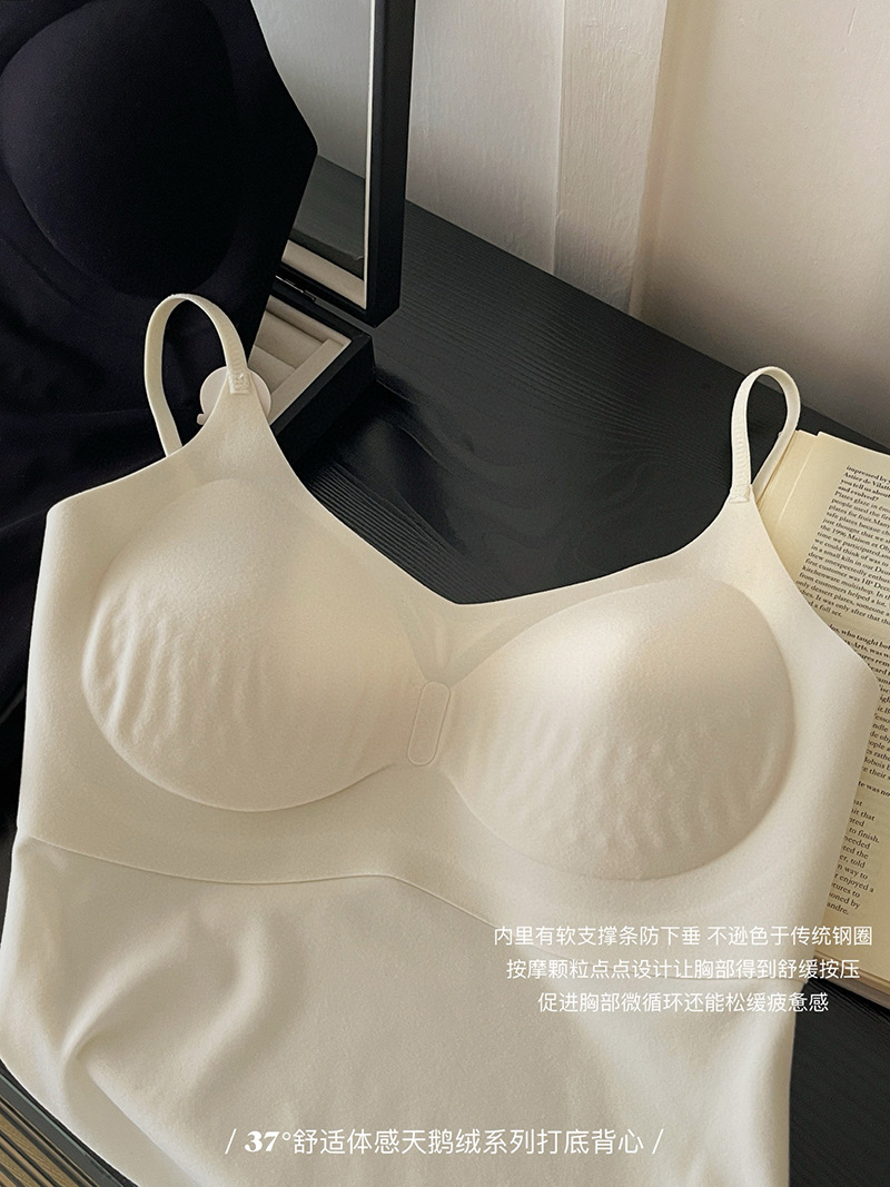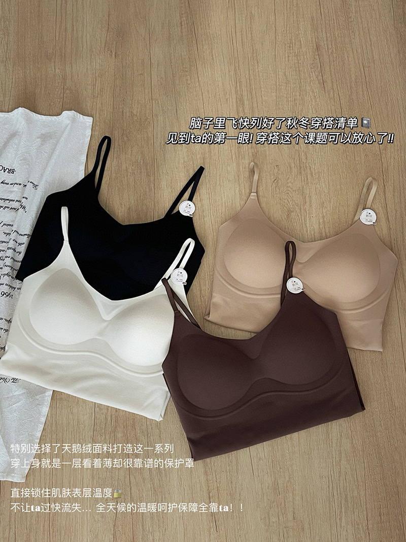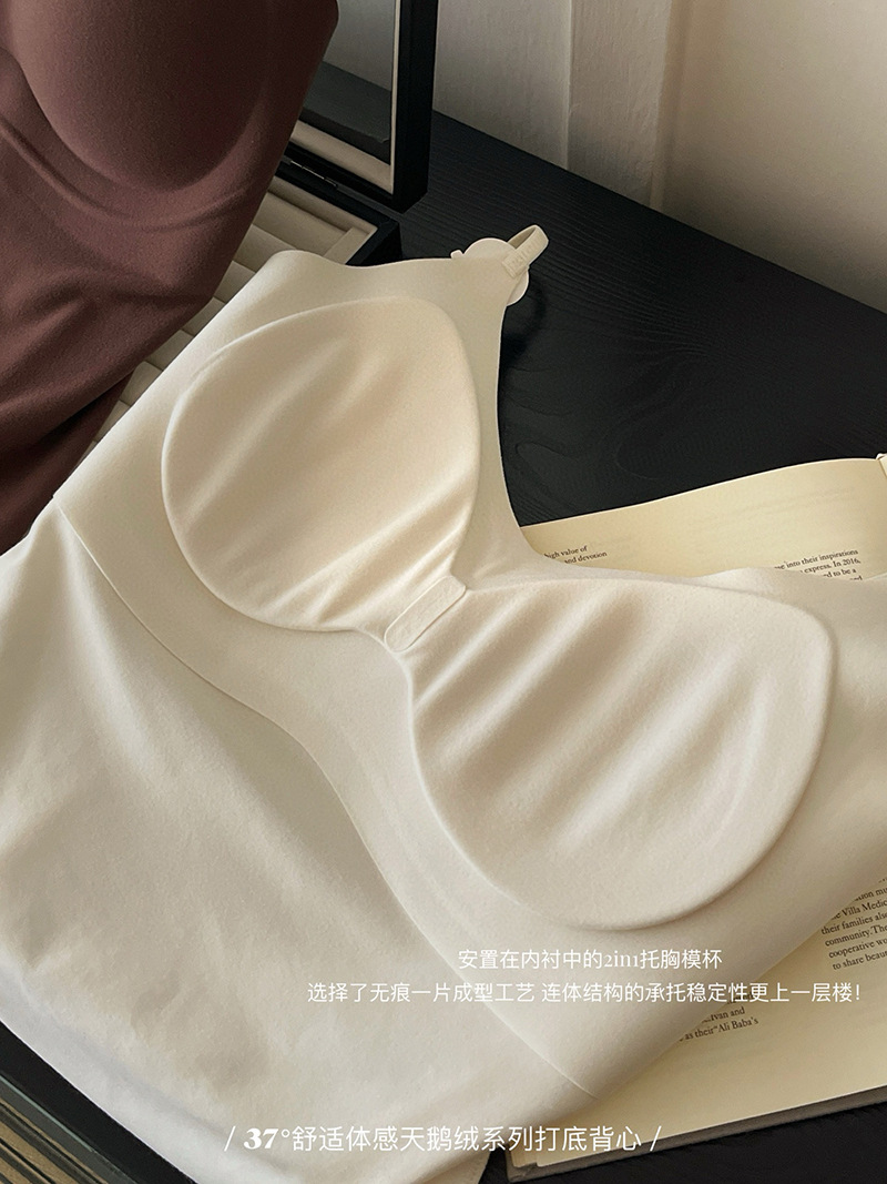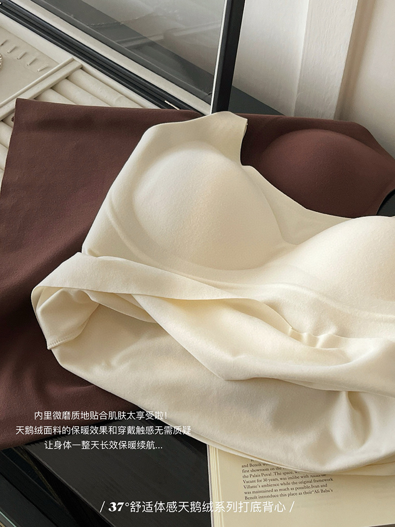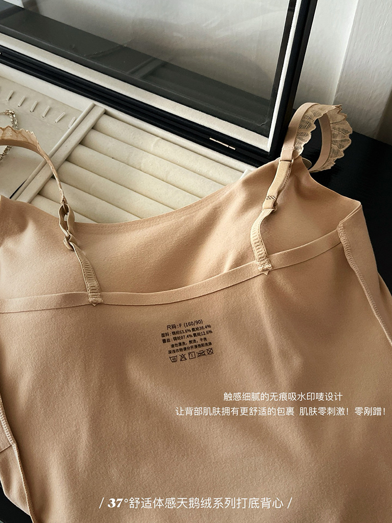 37度舒适体感天鹅绒系列打底背心蕾丝粉底液磨毛保暖一体杯吊带女