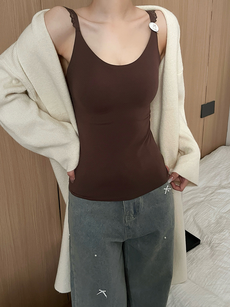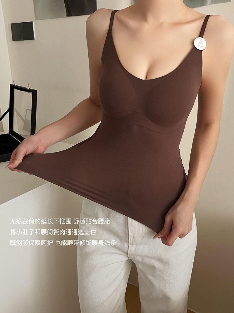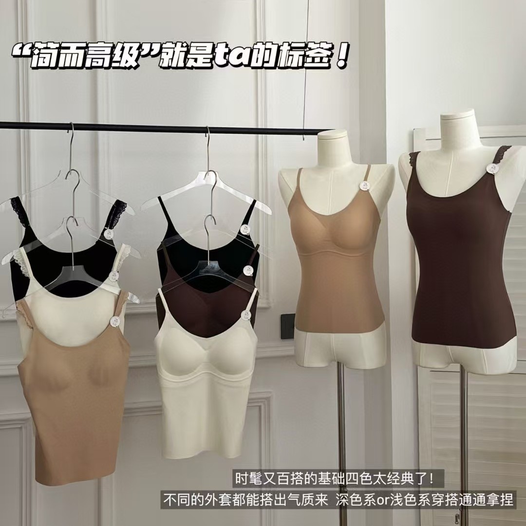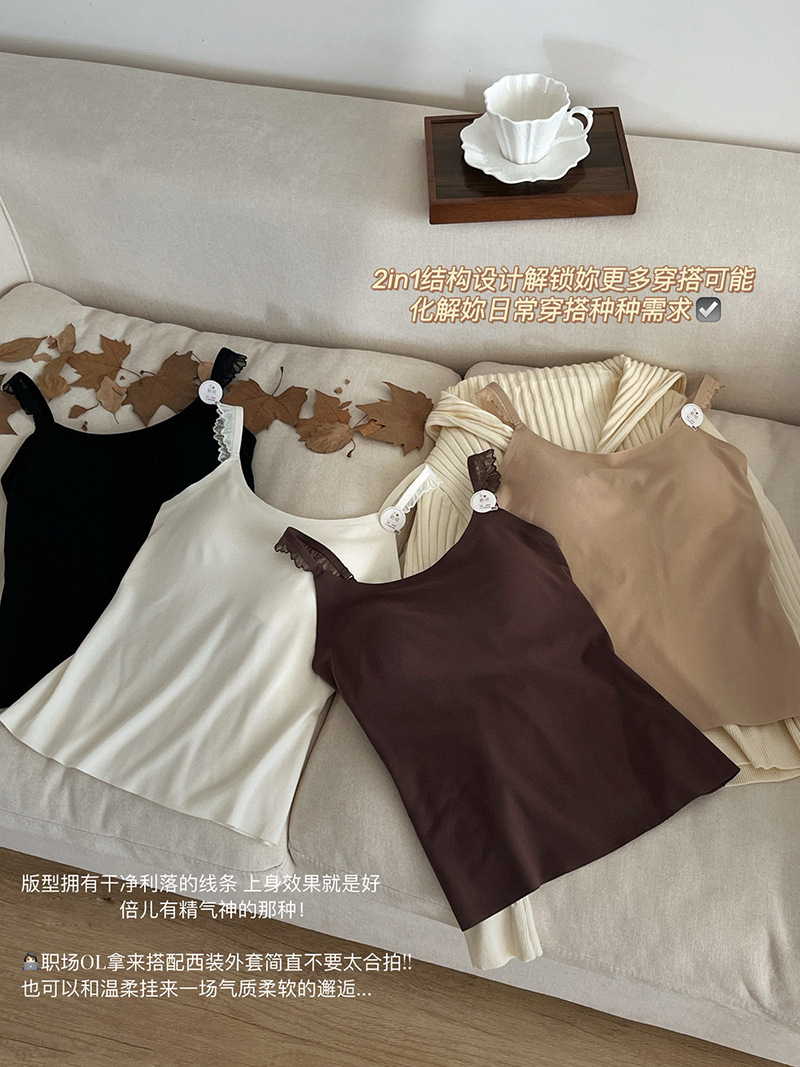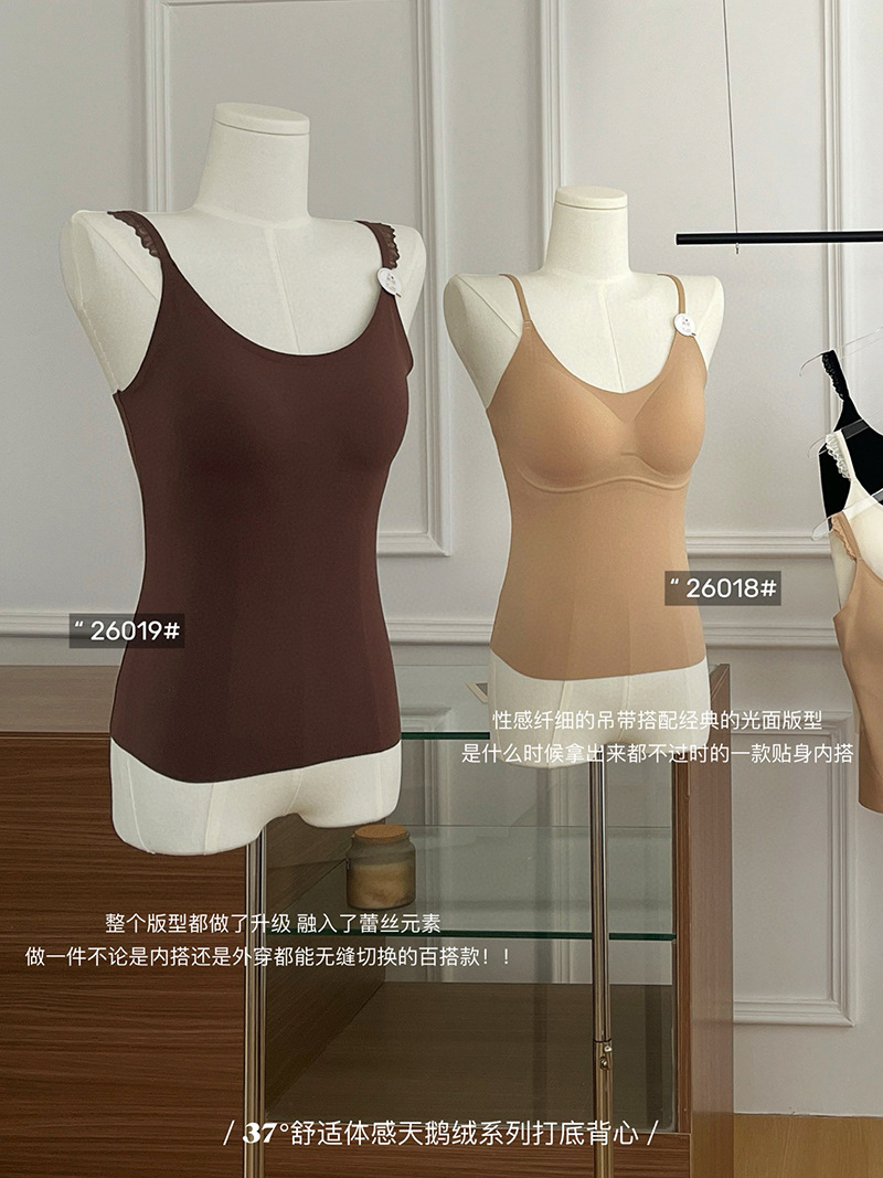 37度舒适体感天鹅绒系列打底背心蕾丝粉底液磨毛保暖一体杯吊带女