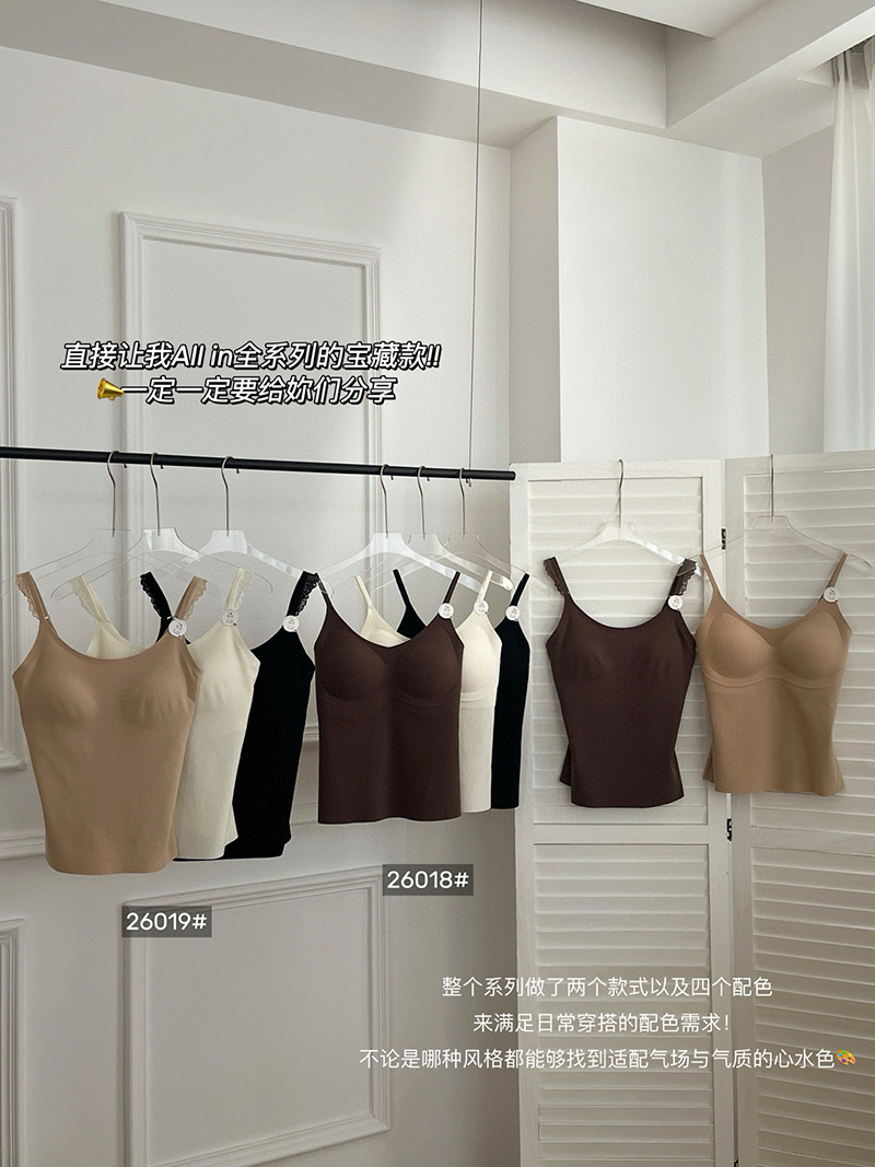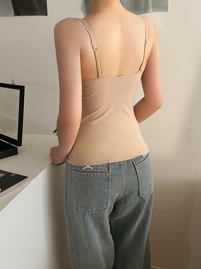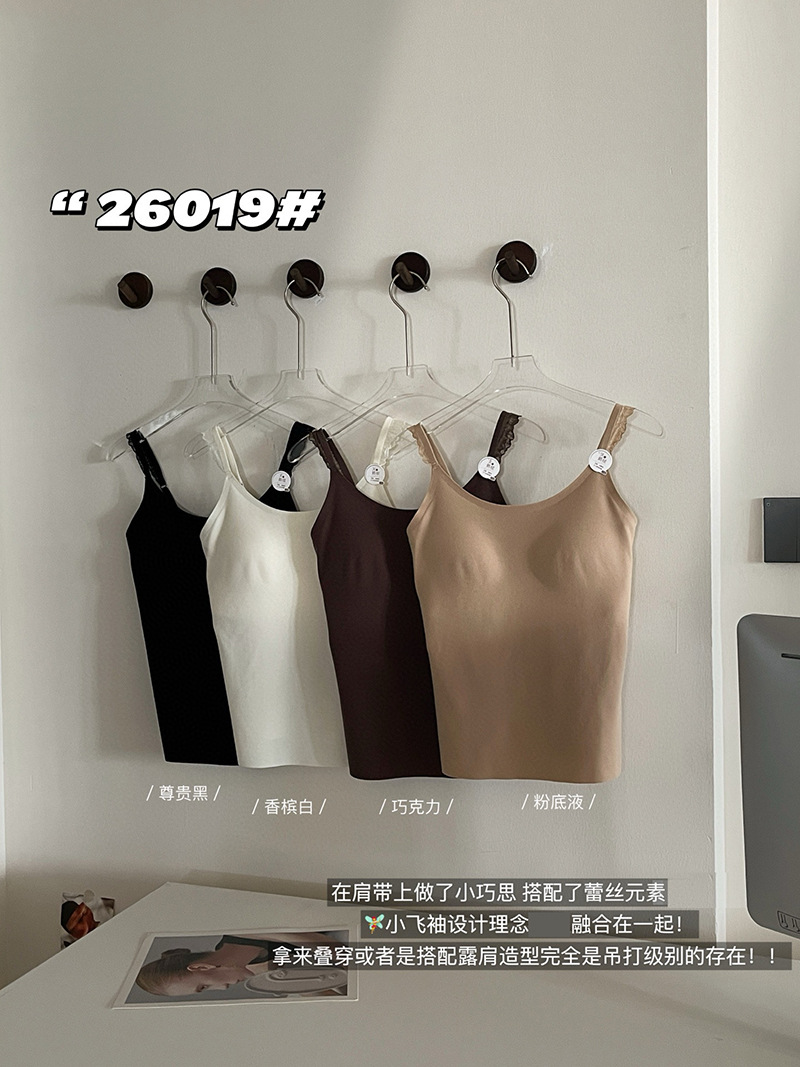 秋冬用起毛レトロレースキャミソール6063、多用途で快適、胸パッド付き固定カップキャミソール、美背、海外貿易向け