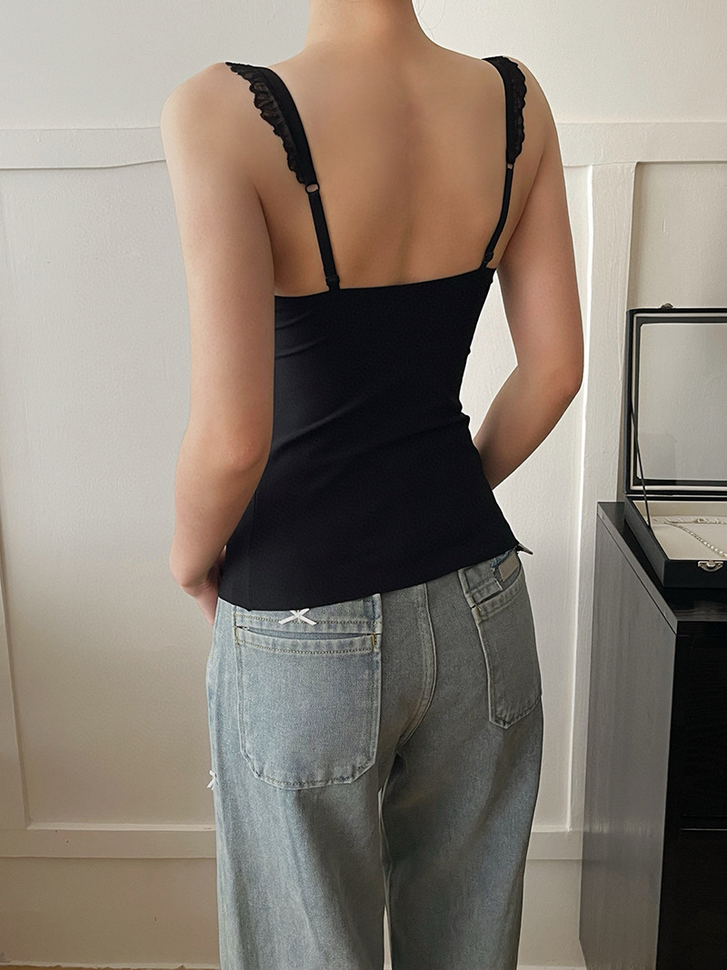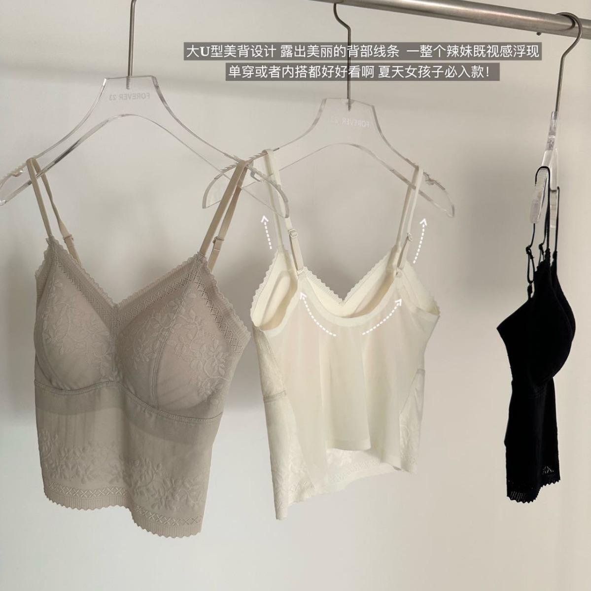 法式蕾丝V领细肩带背心外穿内搭熊熊绒磨毛美背自带杯垫吊带8208
