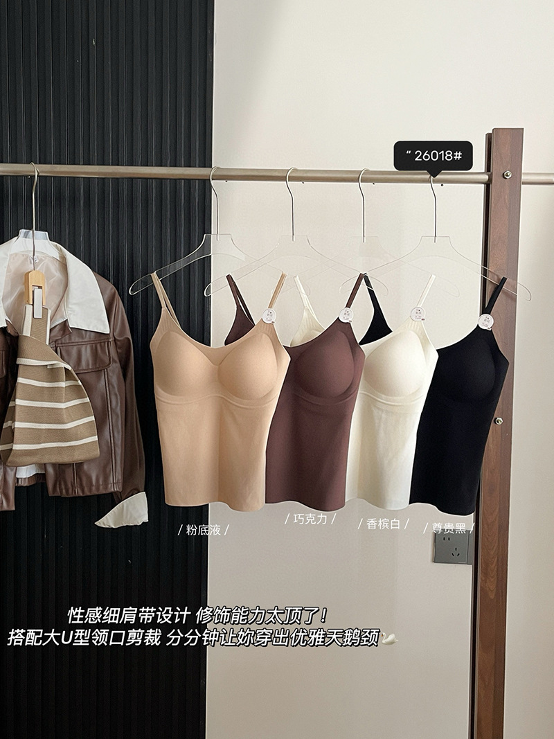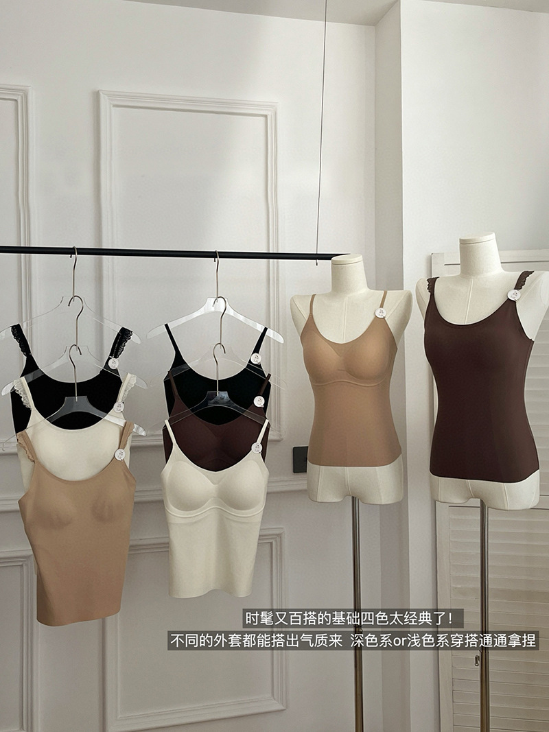 METWO正規版乳皮掴み毛ブラストラップ女子秋冬新作磨毛細い肩ベルト純一体カップベスト2601