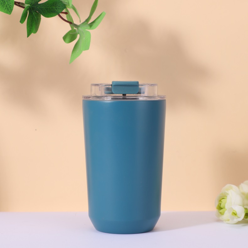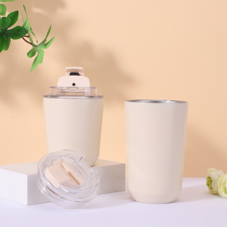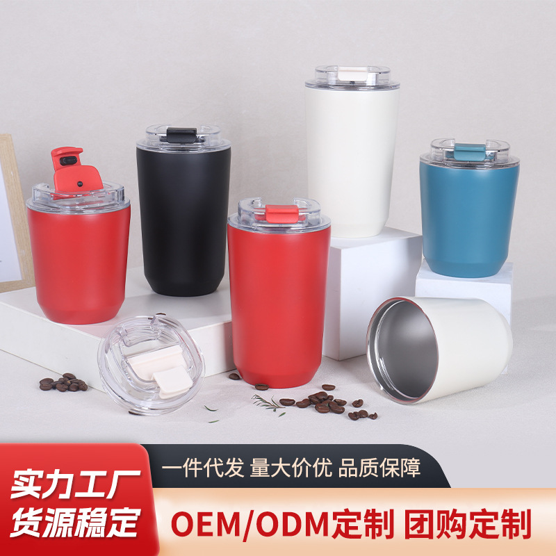 新型クリエイティブ12オンスフリップトップコーヒーカップ、シンプル無地保温カップ、304ステンレス製携帯ミルクカップ卸売