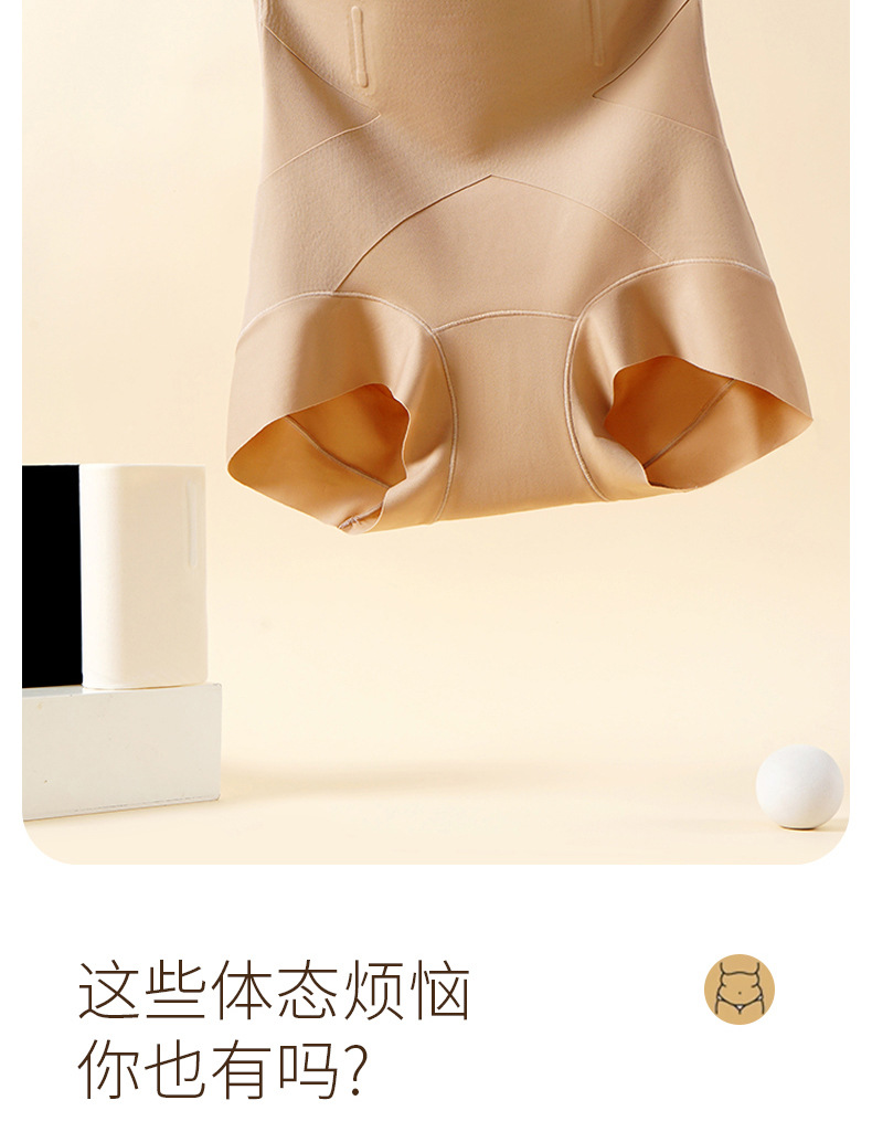 内裤女高腰无痕收腹裤塑形薄款粉底液提臀桑蚕丝抗菌大码三角裤