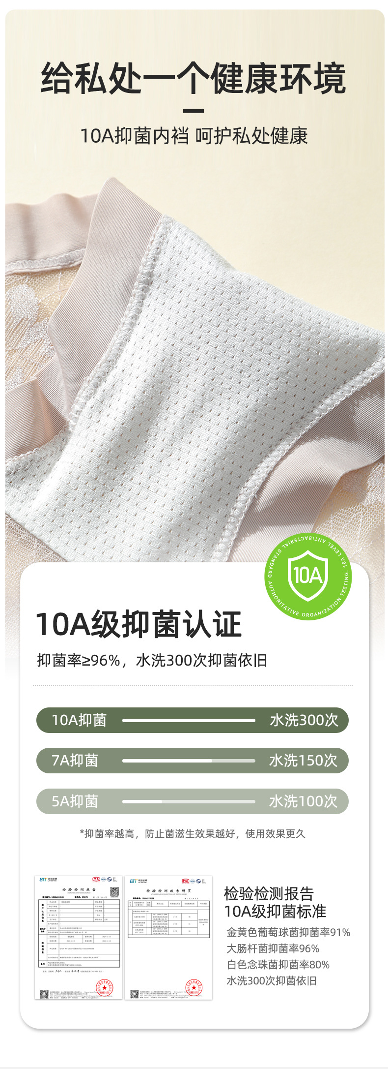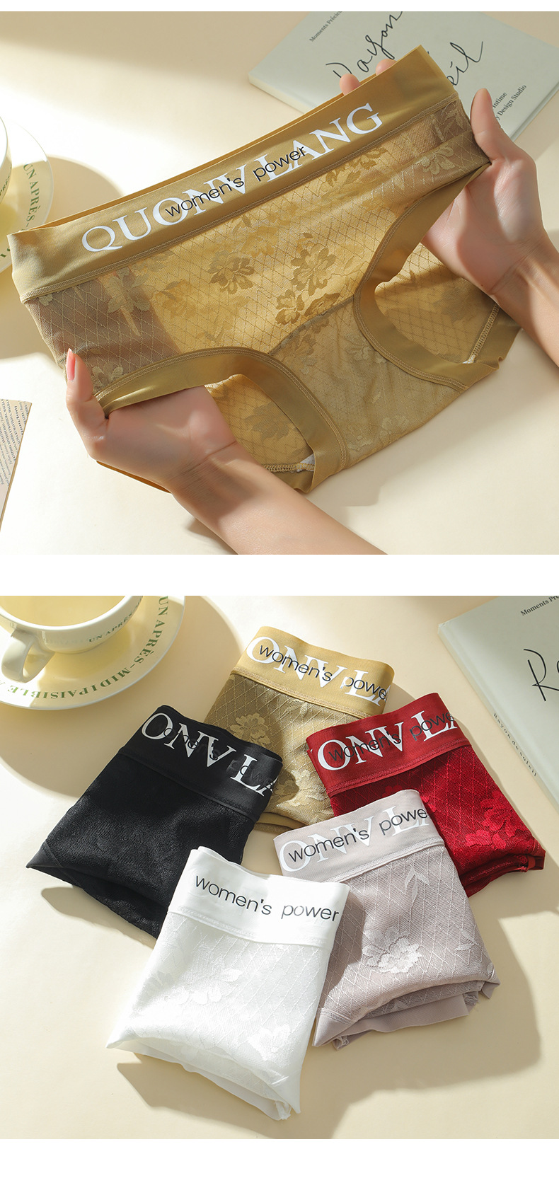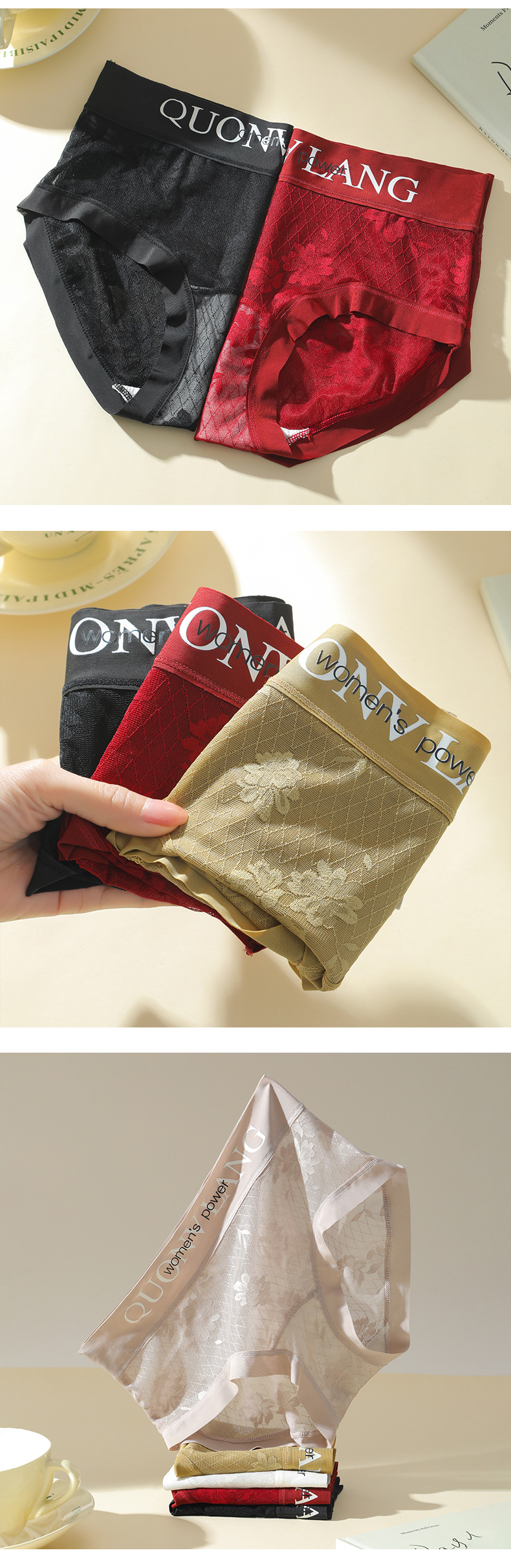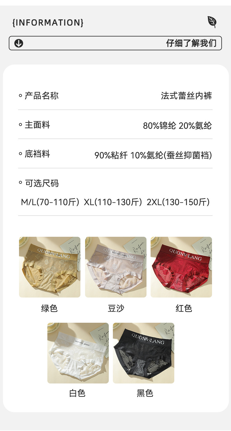 中腰蕾丝女士内裤透气薄款裸感舒适10A抗菌桑蚕丝裆加长裆内裤女