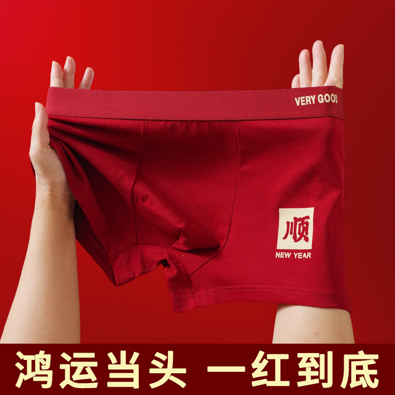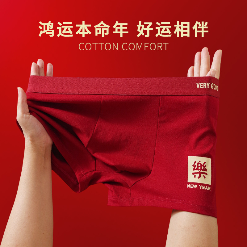 工厂批发男士内裤本命年红色纯棉抑菌裆四角短裤结婚喜庆大红内裤