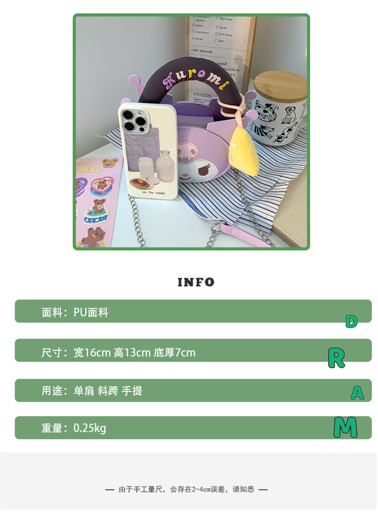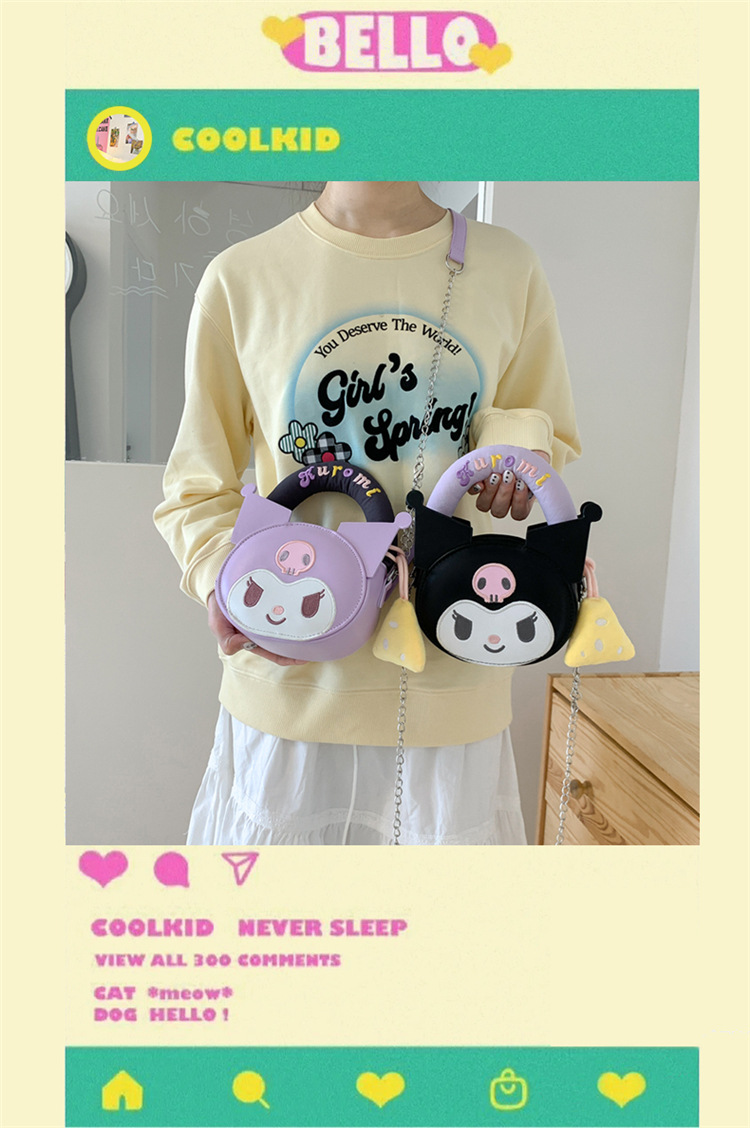 卡通可爱库洛米单肩斜挎包小众设计精致少女心手提包时尚百搭背包