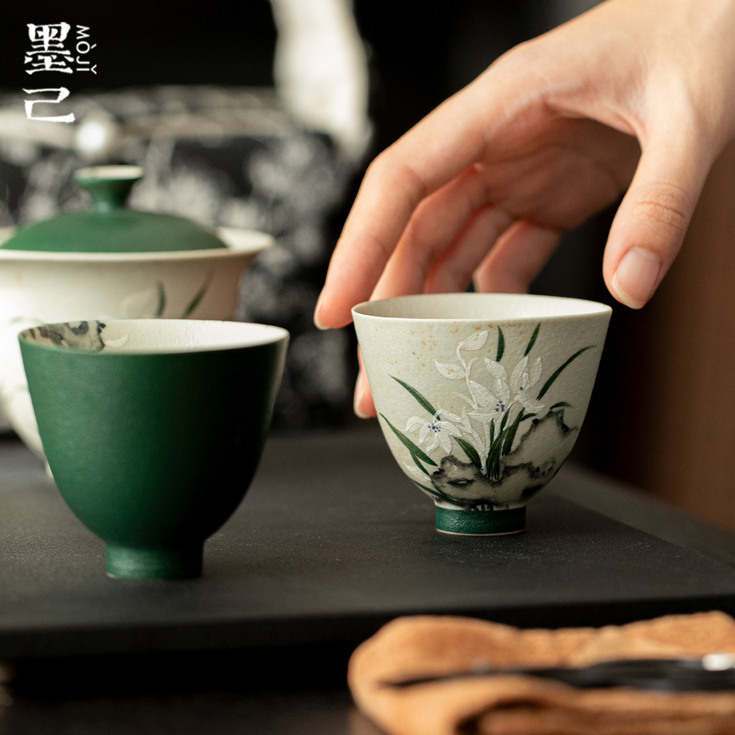 墨己火石红仿古手绘兰花陶瓷品茗杯功夫茶具家用茶杯喝茶单杯杯子