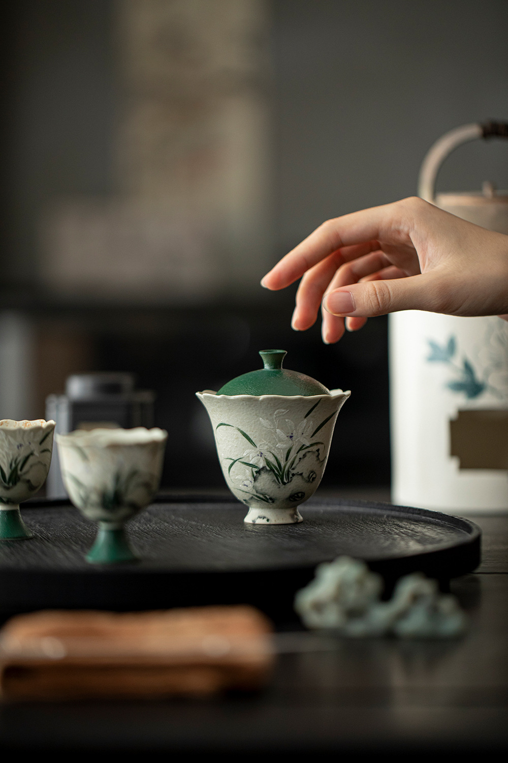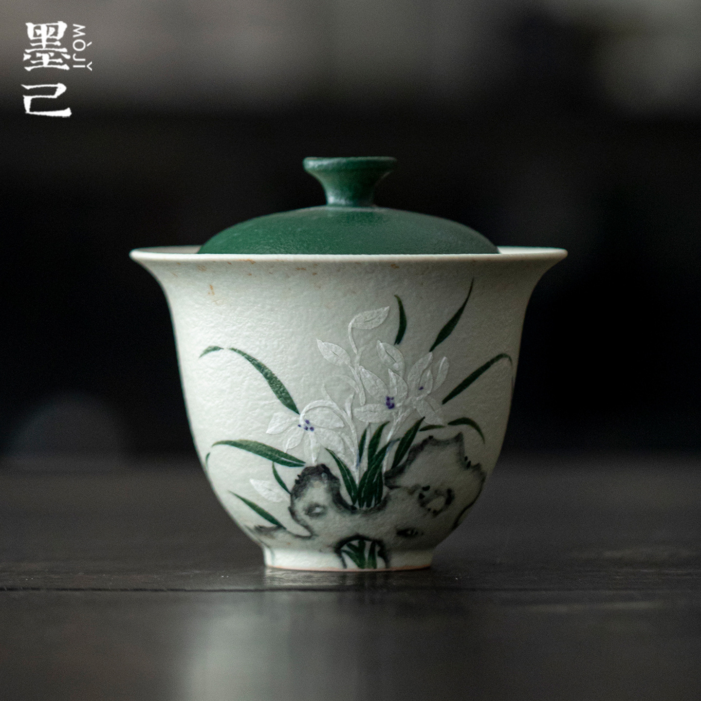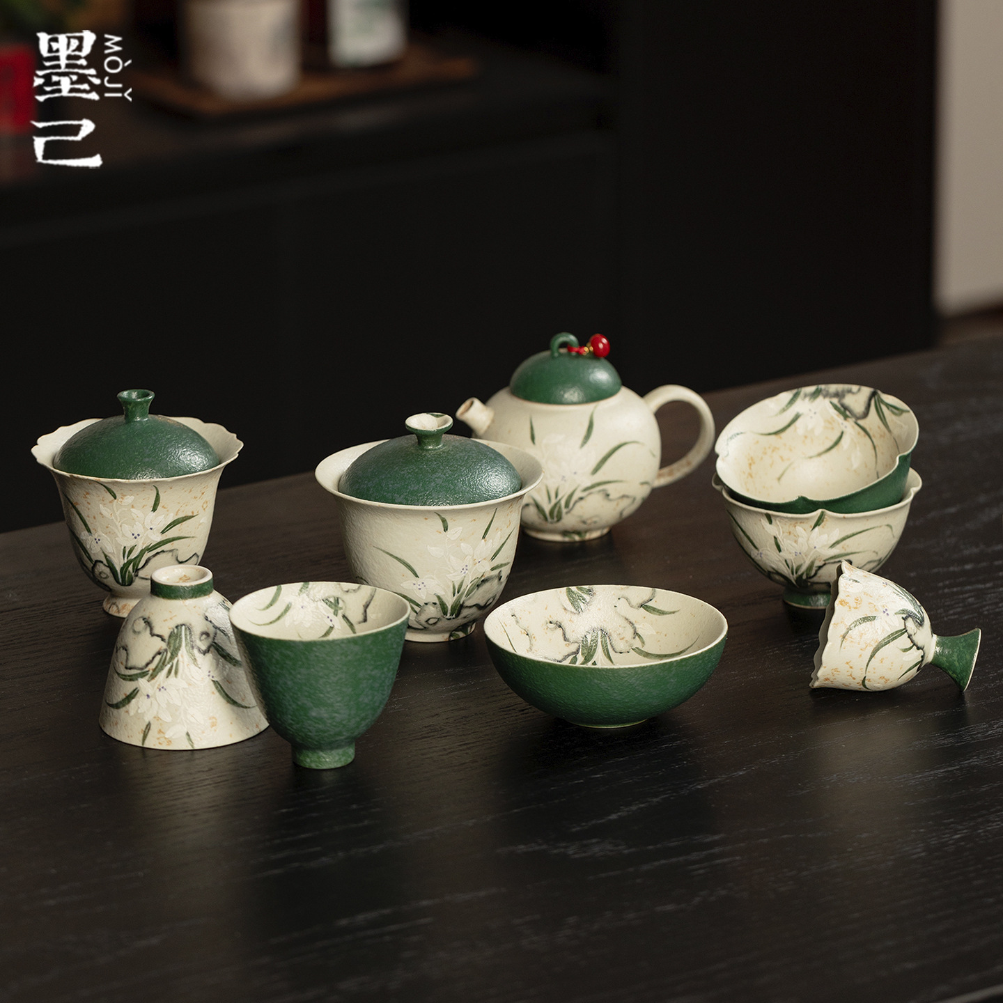 墨己火石红空谷幽兰手绘仿古家用茶具功夫茶具茶壶盖碗主人杯茶杯