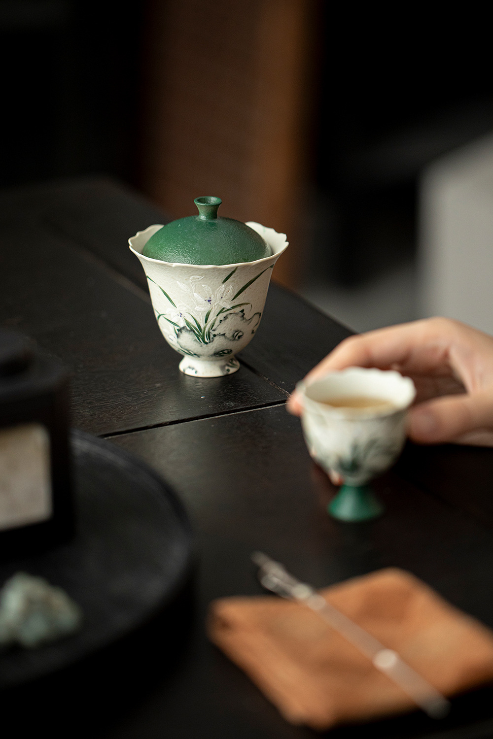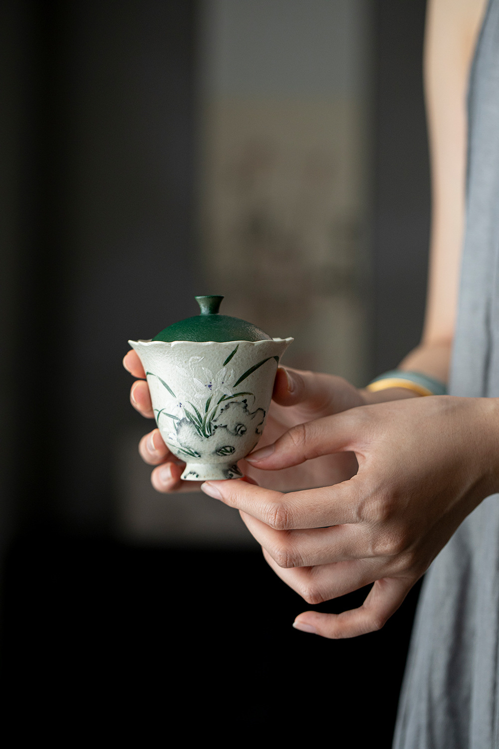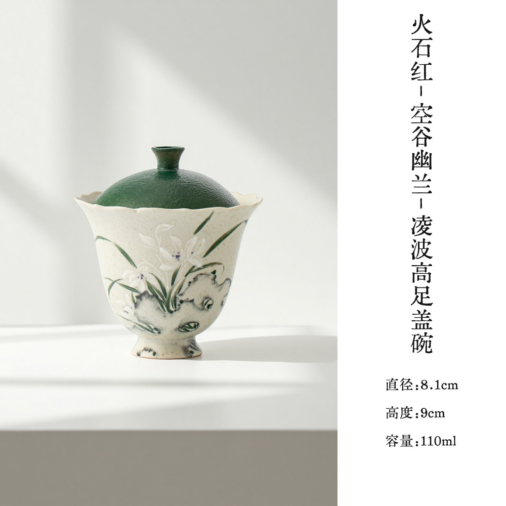 颜色 火石红-空谷幽兰-凌波高足盖碗