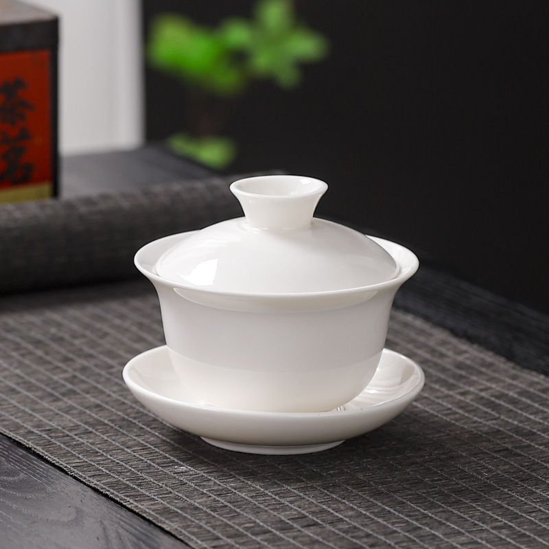 德化羊脂玉白瓷单个盖碗茶杯陶瓷茶具大号泡茶器家用功夫三才茶碗
