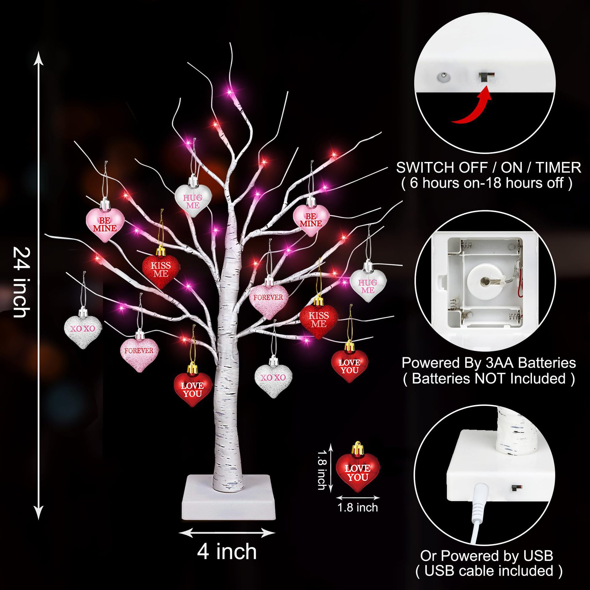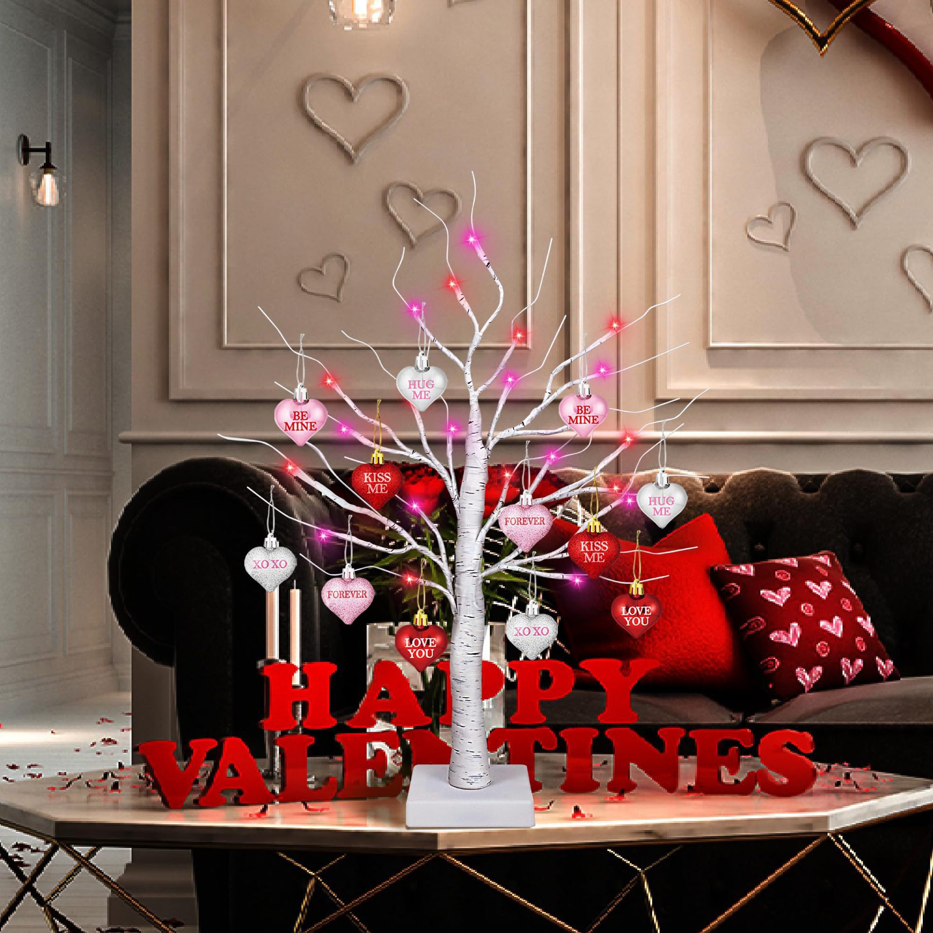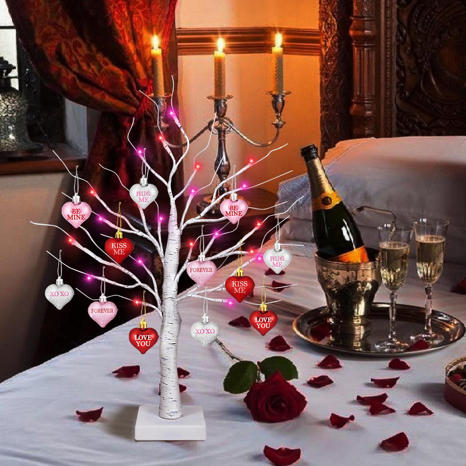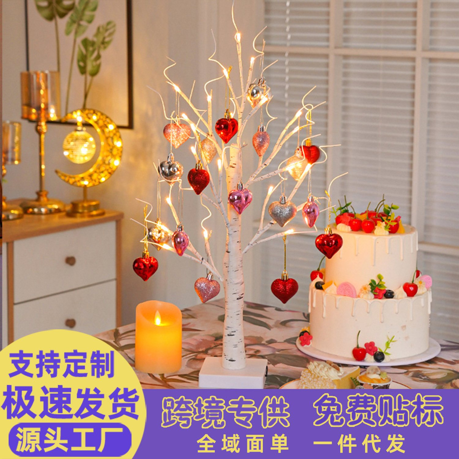クロスボーダー LED バレンタインデー カラフルな愛の光付き白樺の木パーティー フェスティバルの雰囲気の形のツリー ライト プロポーズ オーナメント