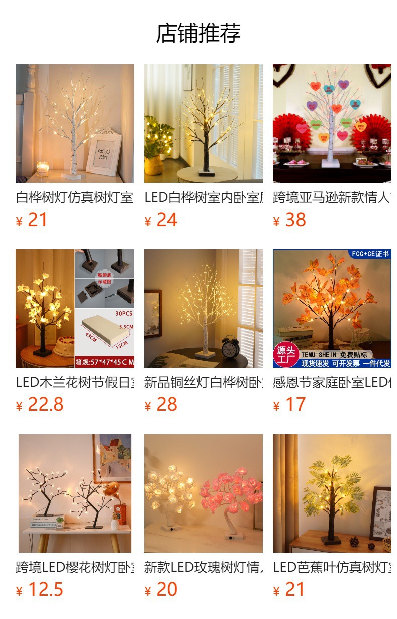 アマゾンクロスボーダー愛の要素ツリーライト祭りクリエイティブ雰囲気白樺ツリーモデルライト寝室部屋装飾ライト