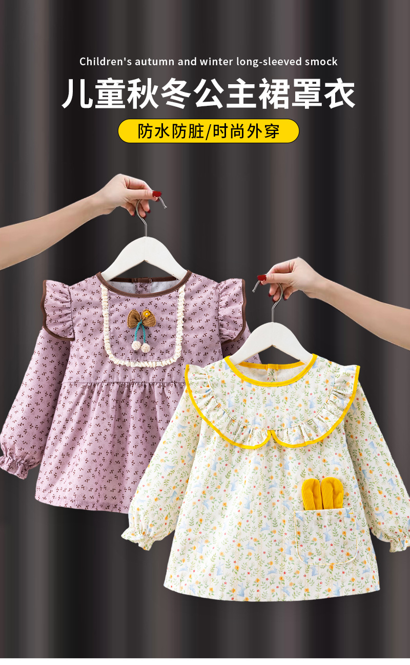 女宝防水防脏罩衣秋冬洋气公主裙儿童吃饭围兜围裙幼儿园外穿护衣