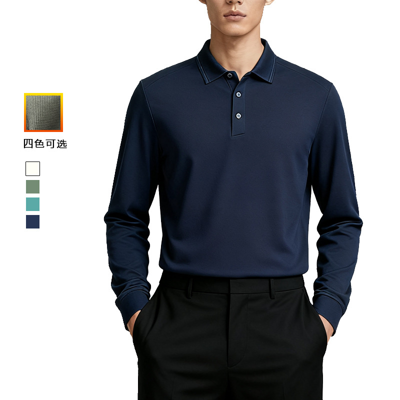 男装打底棉羊毛男士长袖POLO衫爸爸装秋冬10A抗菌桑蚕丝翻领t恤男