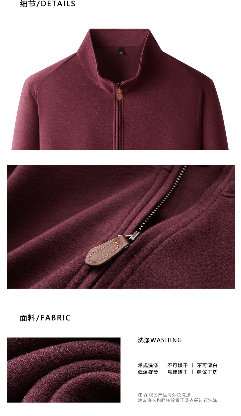 桑蚕丝拉链长袖卫衣男休闲远红外7A抗菌抓绒保暖纯色外穿上衣秋冬