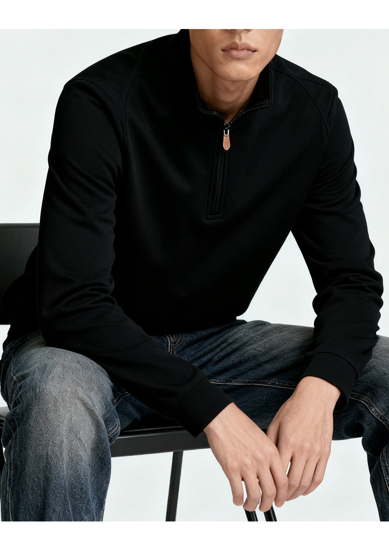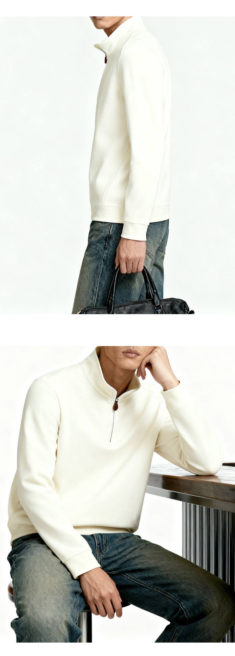 280g德绒半高领保暖打底衫男秋冬款桑蚕丝半拉链长袖卫衣抓绒t恤