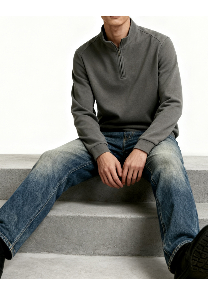 德绒半高领卫衣男抓绒保暖加厚打底衫男士秋冬款桑蚕丝拉链长袖