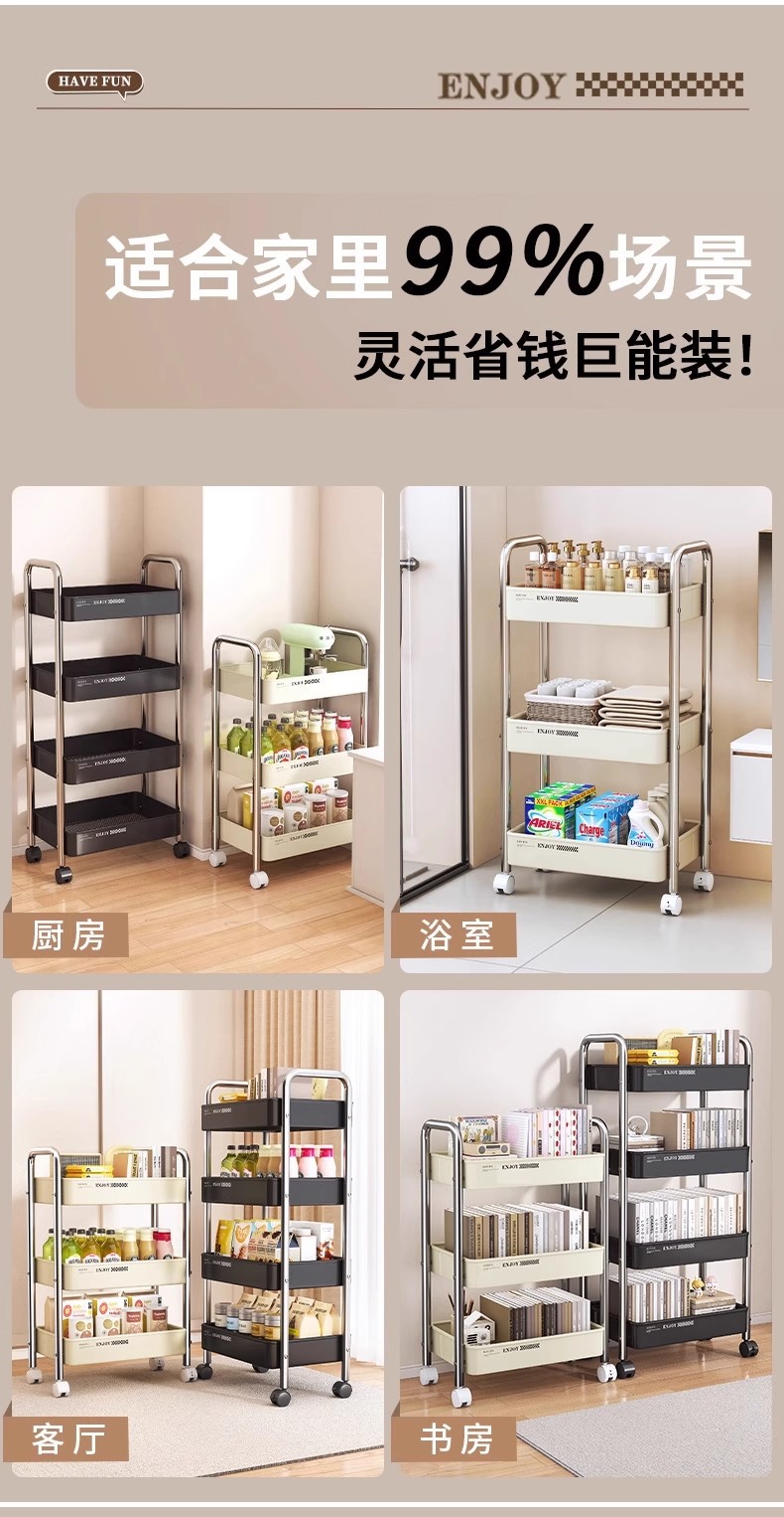 小推车置物架落地客厅多层功能婴儿浴室储物书架移动零食收纳架子