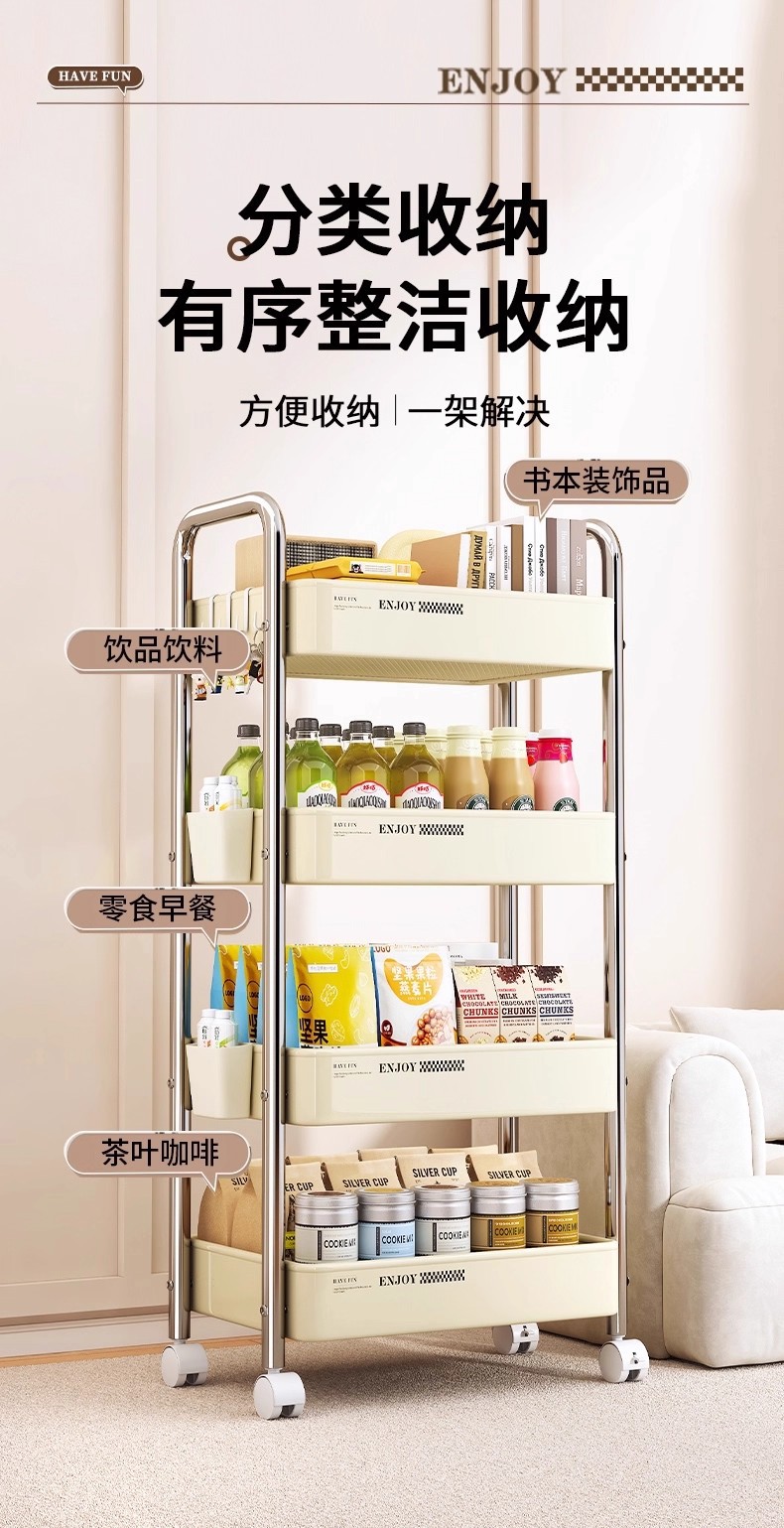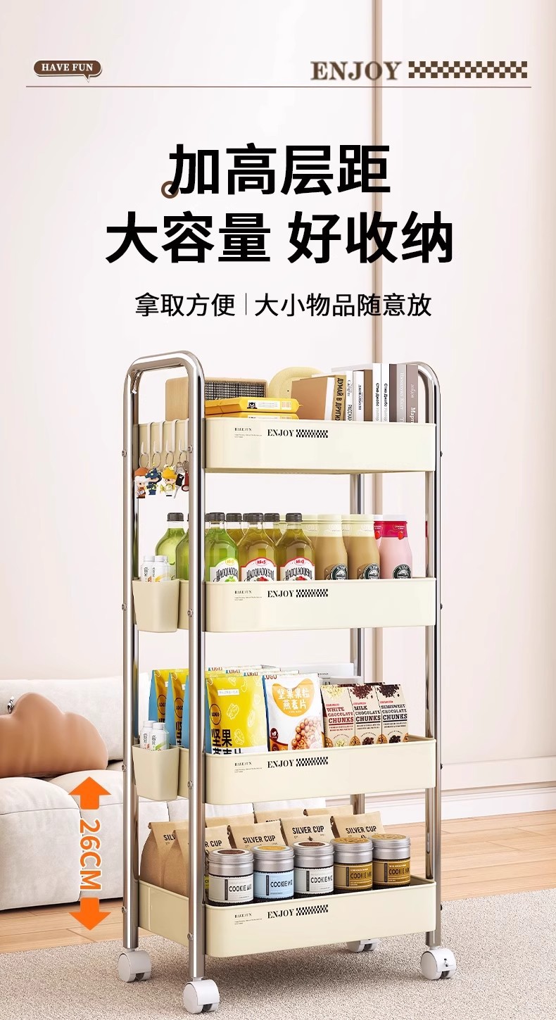 多層移動可能金属収納カート棚高颜値家庭用寝室客間間食収納棚