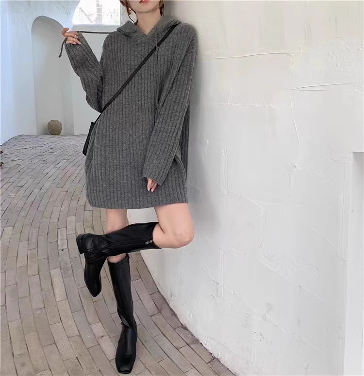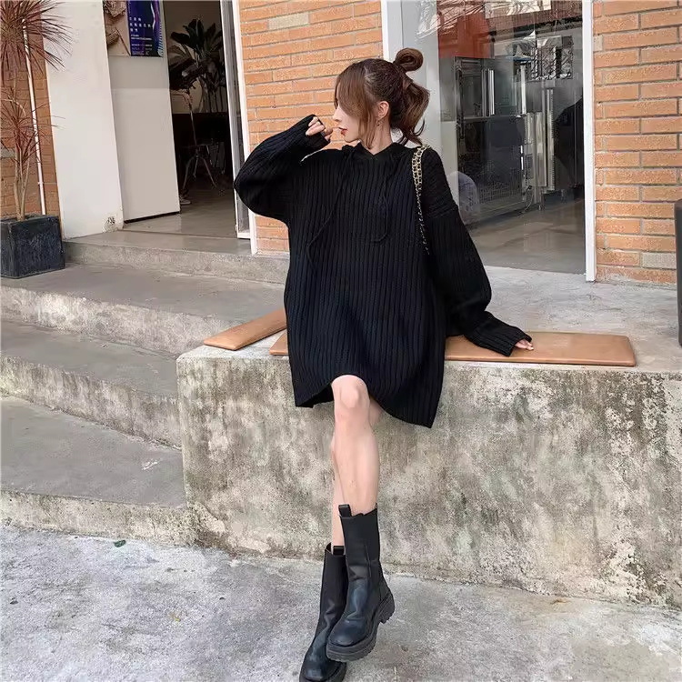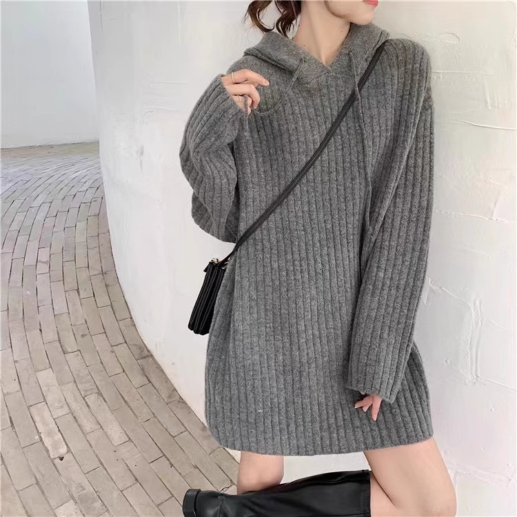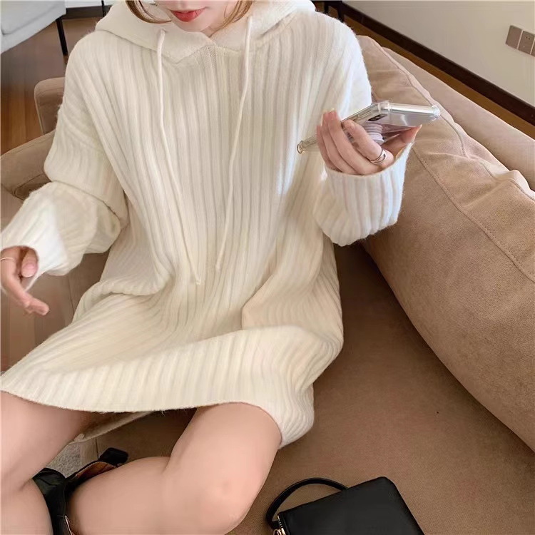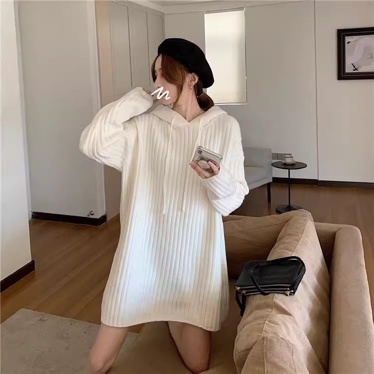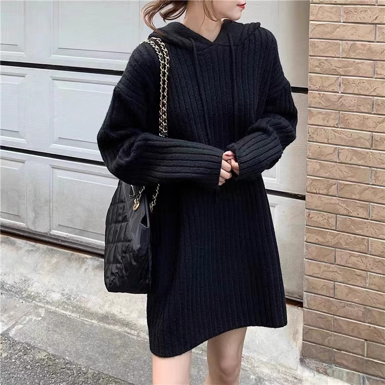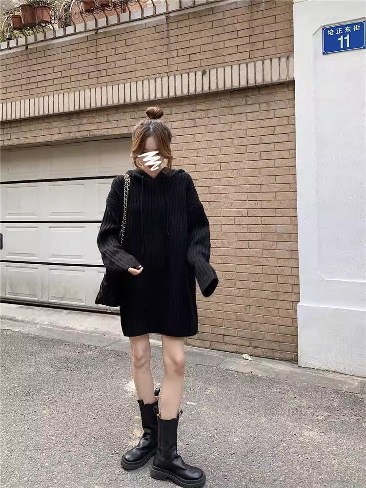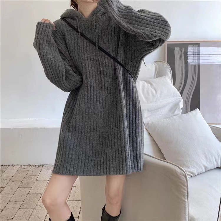 连帽羊毛衫针织衫卫衣裙秋冬25新款宽松慵懒风外穿内搭中长款毛衣