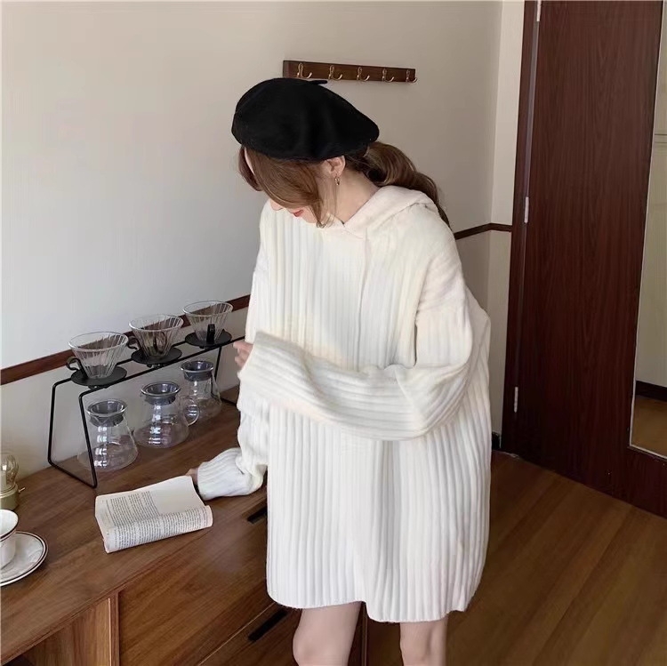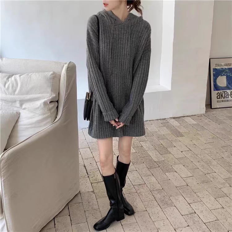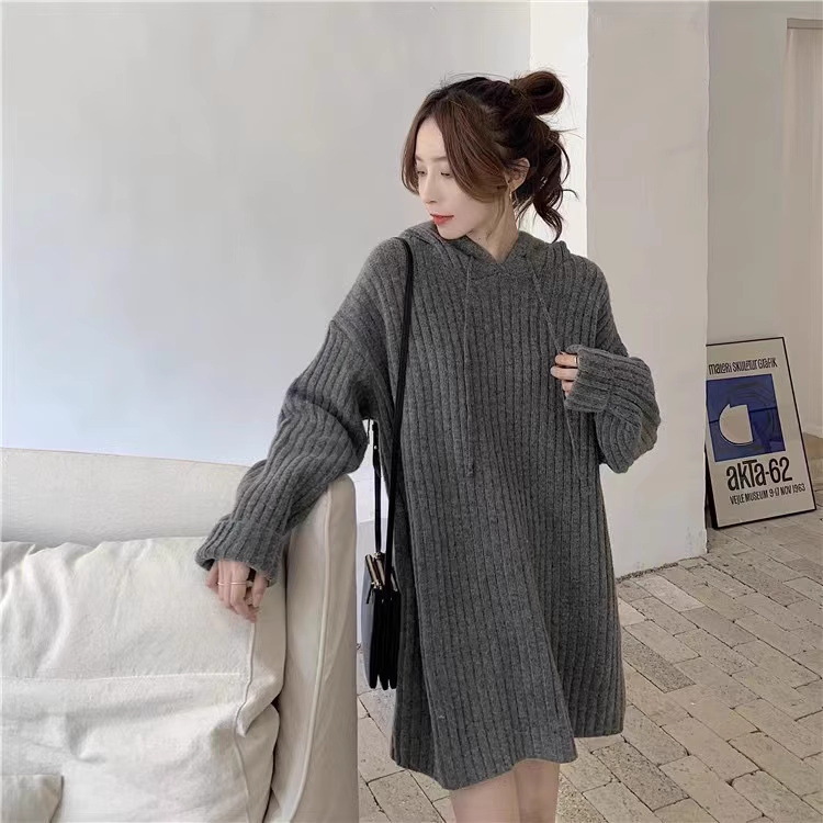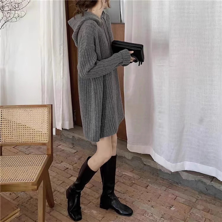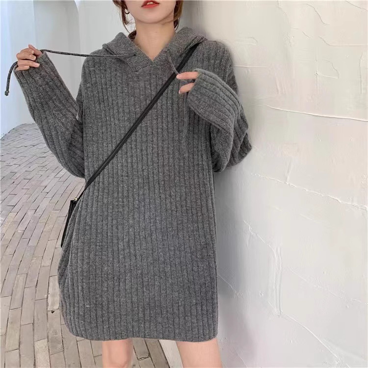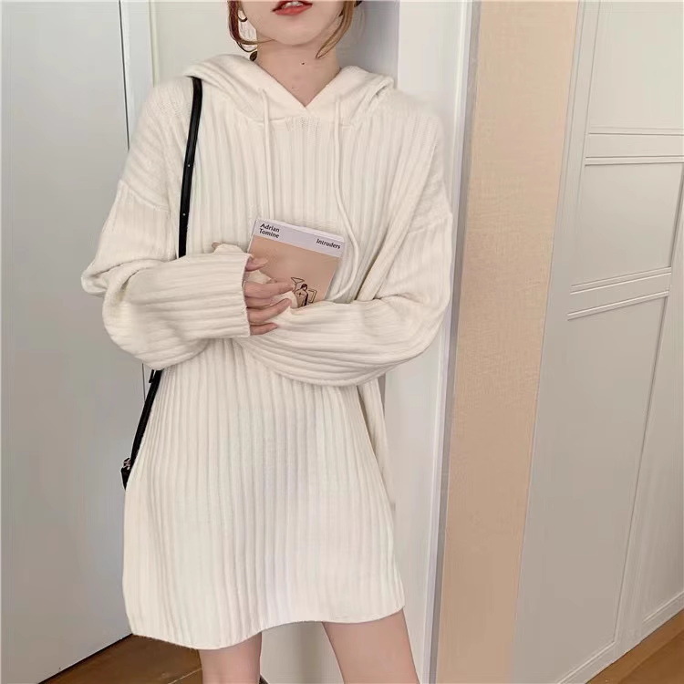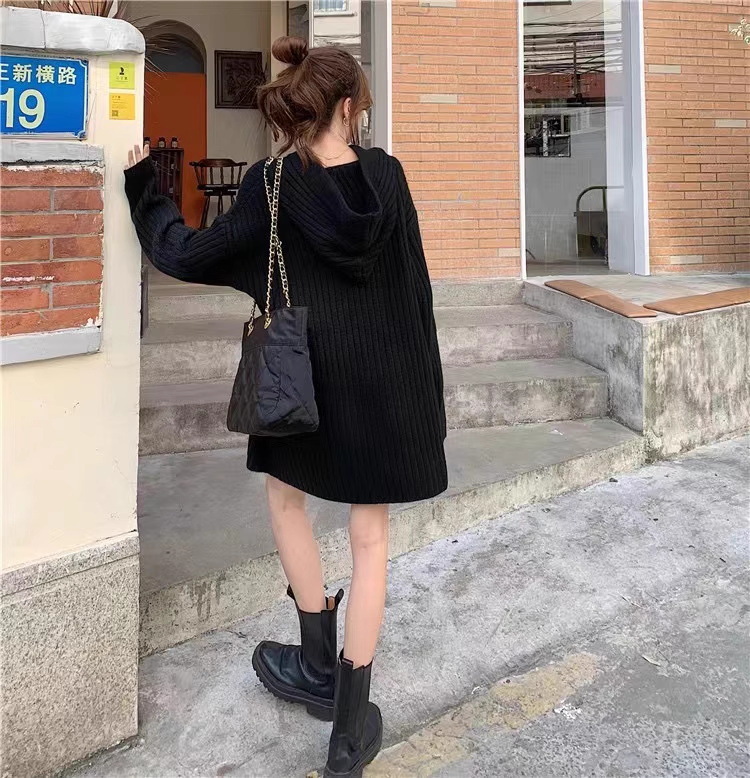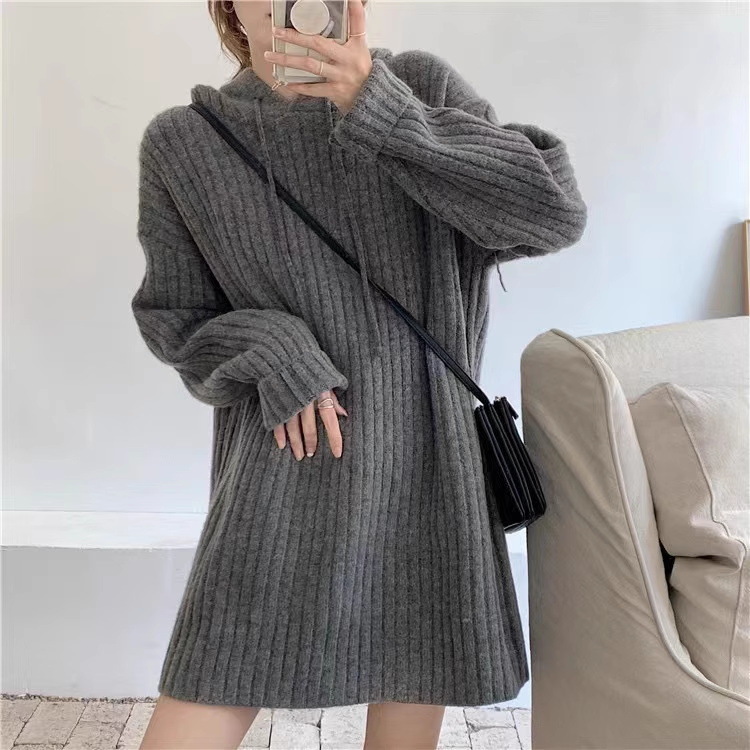 连帽羊毛衫针织衫卫衣裙秋冬25新款宽松慵懒风外穿内搭中长款毛衣