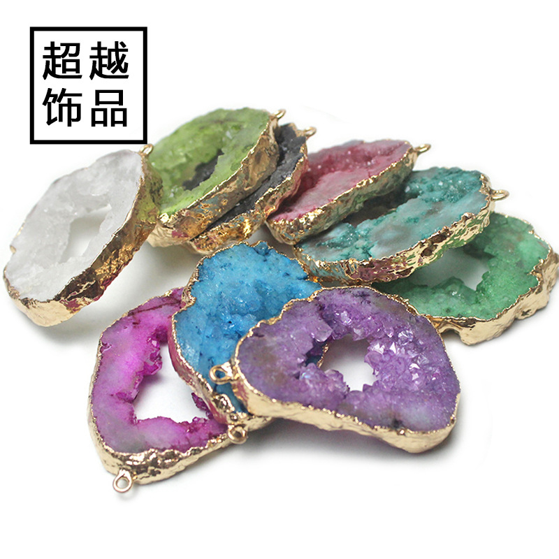 天然石玛瑙原石电镀包边项链diy饰品原创镶嵌欧美项饰晶洞吊坠