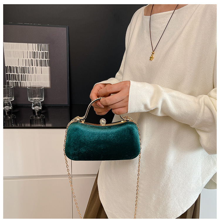 复古丝绒镶钻手拿包2025秋冬新款优雅礼服旗袍包绒面链条斜挎包