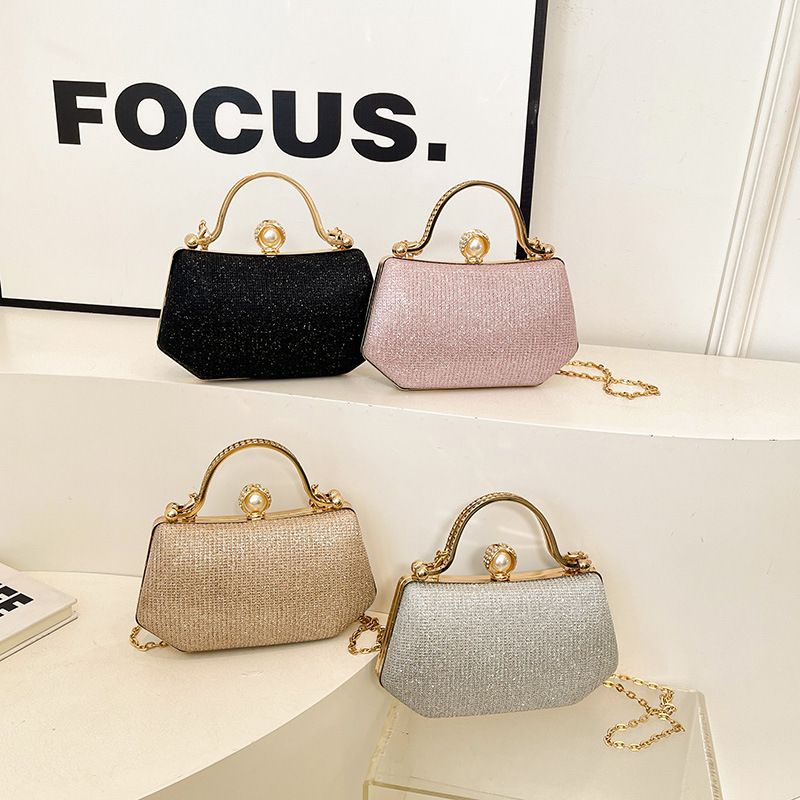 跨境珍珠链条小包包女2025新款闪钻亮面晚宴包洋气百搭女士盒子包