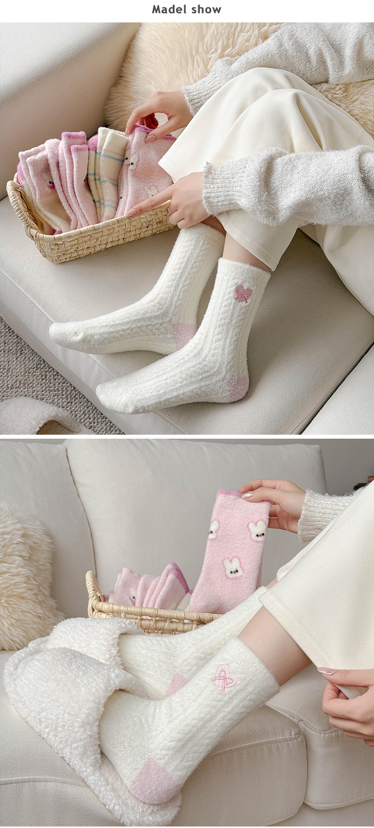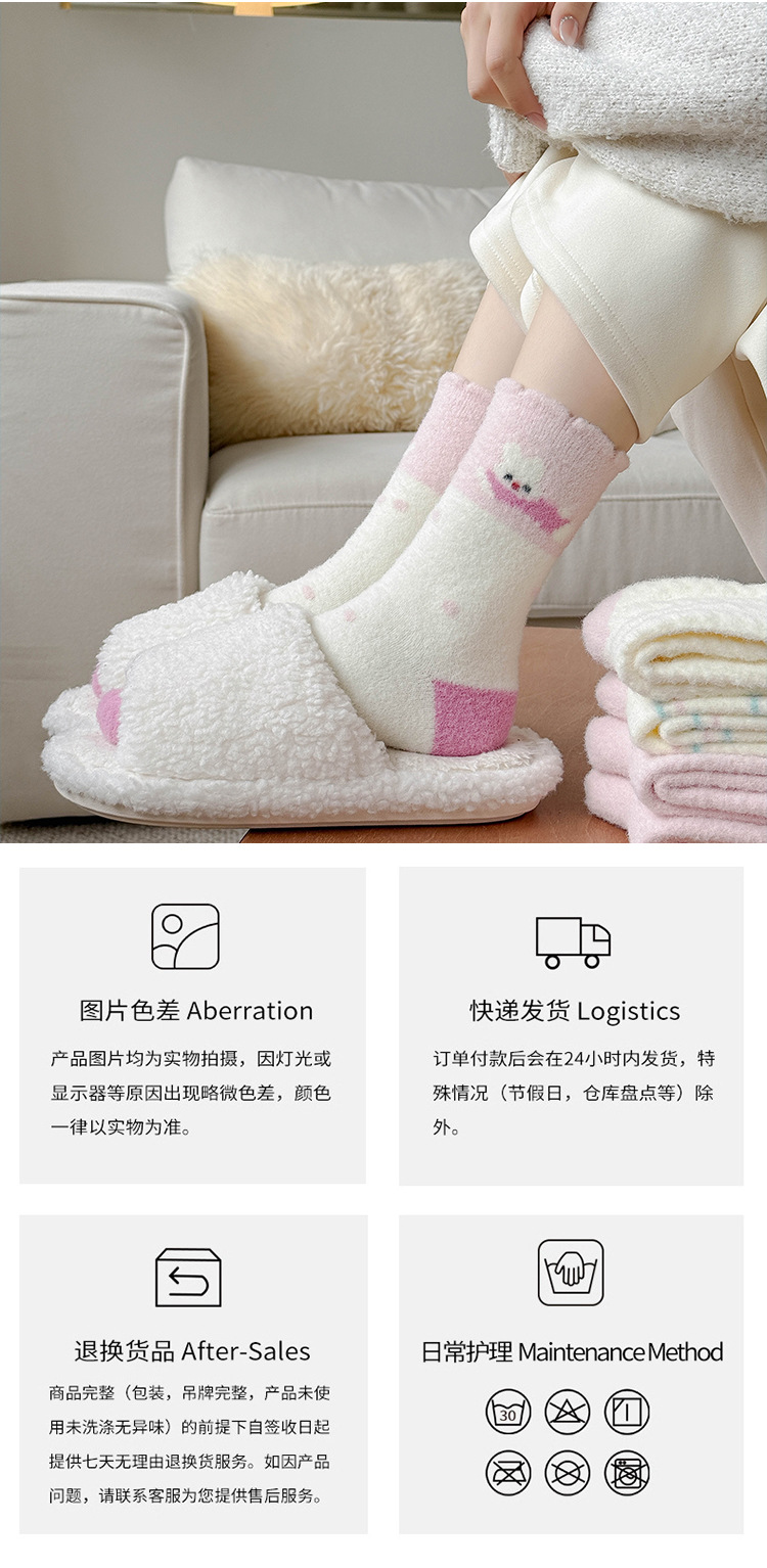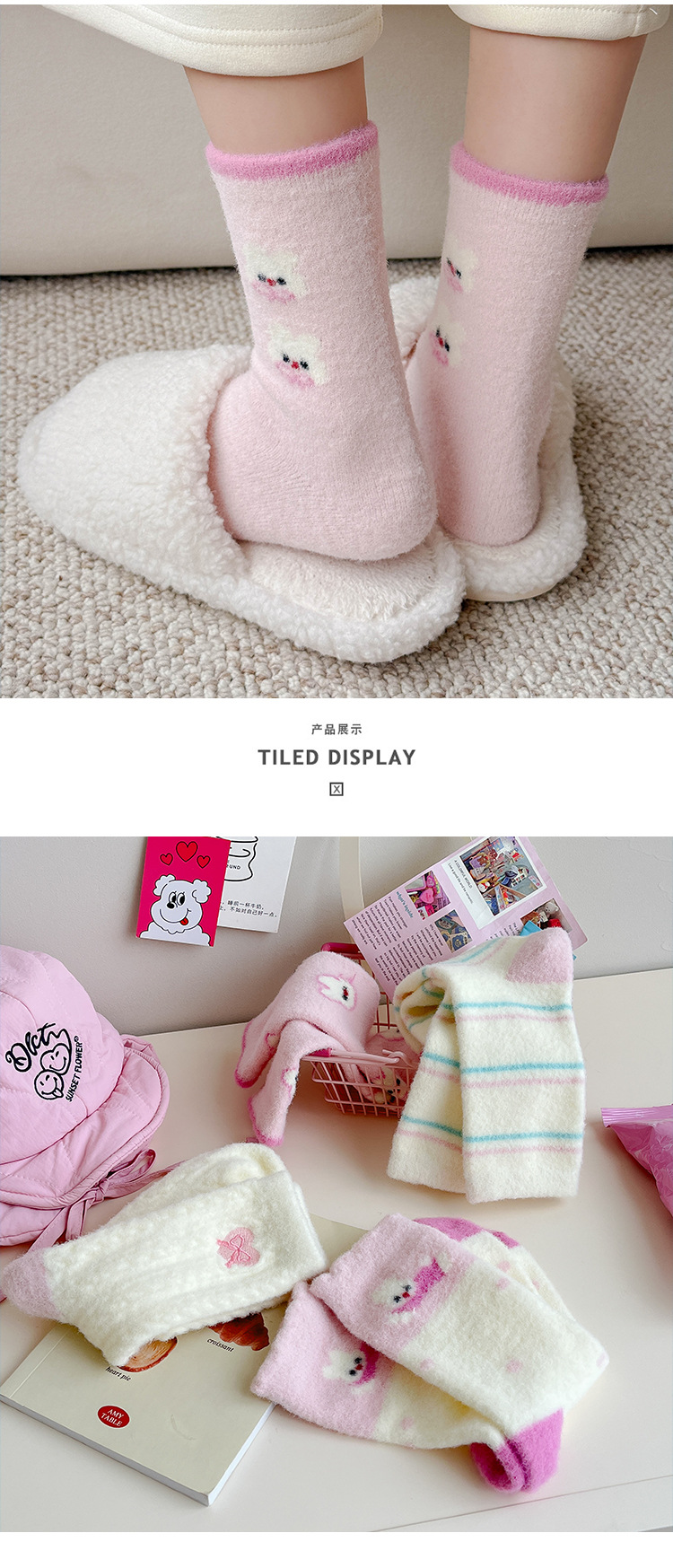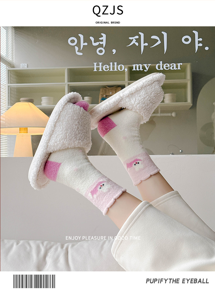 澳绒袜子女日系加绒加厚后跟可爱卡通月子中筒袜保暖睡眠袜家居袜