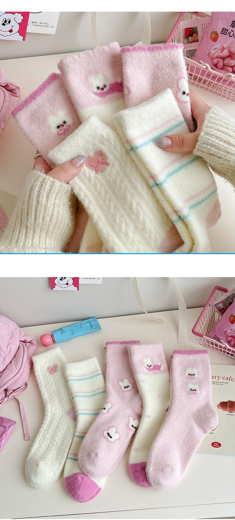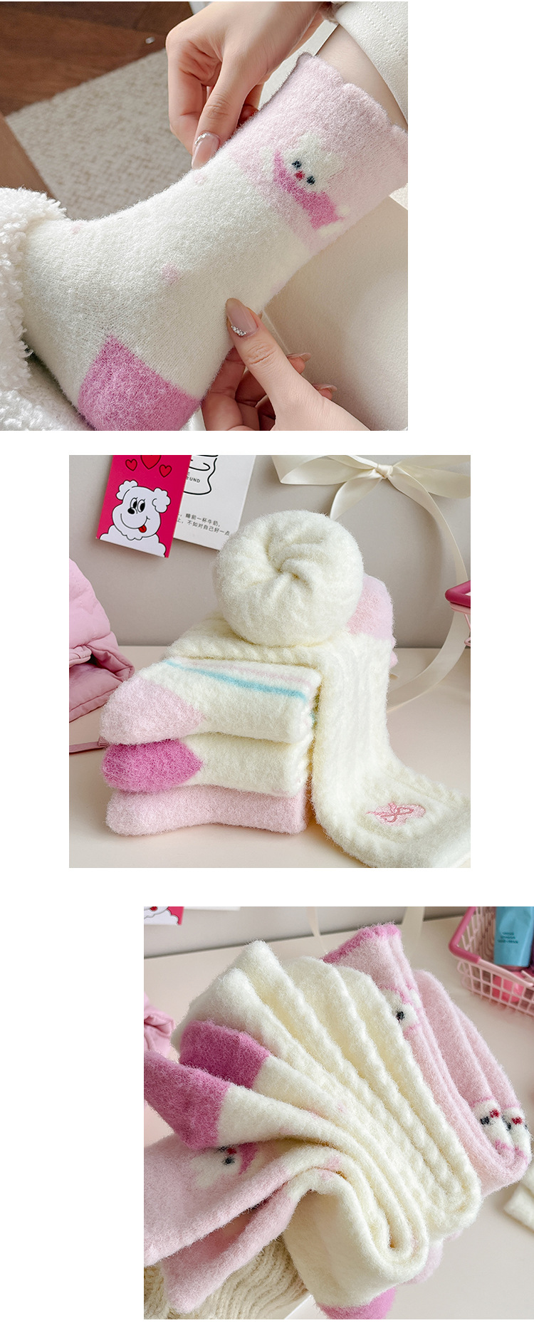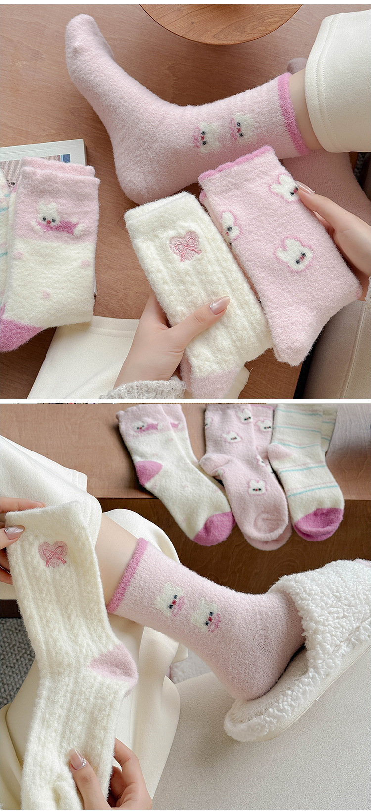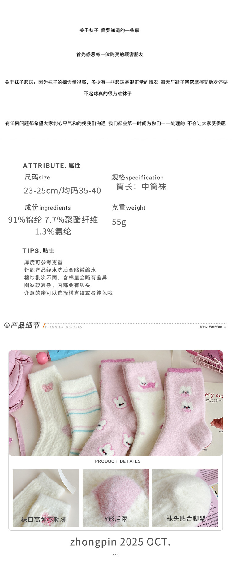澳绒袜子女日系加绒加厚后跟可爱卡通月子中筒袜保暖睡眠袜家居袜