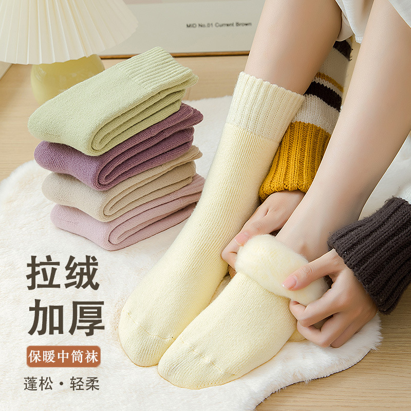 月子袜羊绒袜子女秋冬季中筒袜加绒加厚保暖毛绒睡眠地板袜女长袜