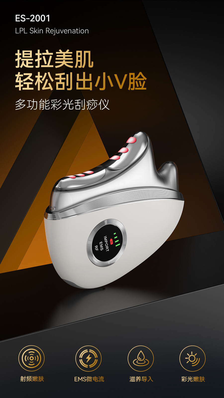 外国貿易向け家庭用美容器、マイクロカレントフェイシャルスクレイピング器、カラーライトマッサージネックケア器、振動導入器