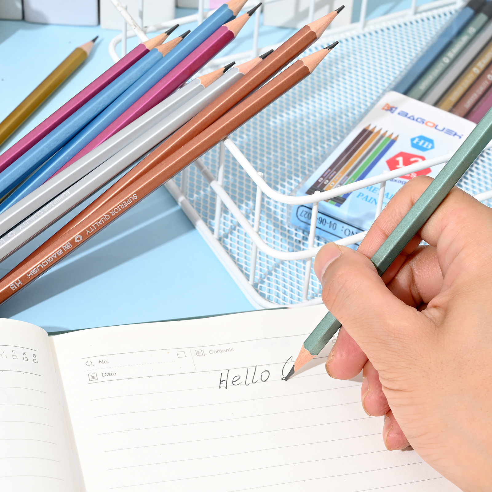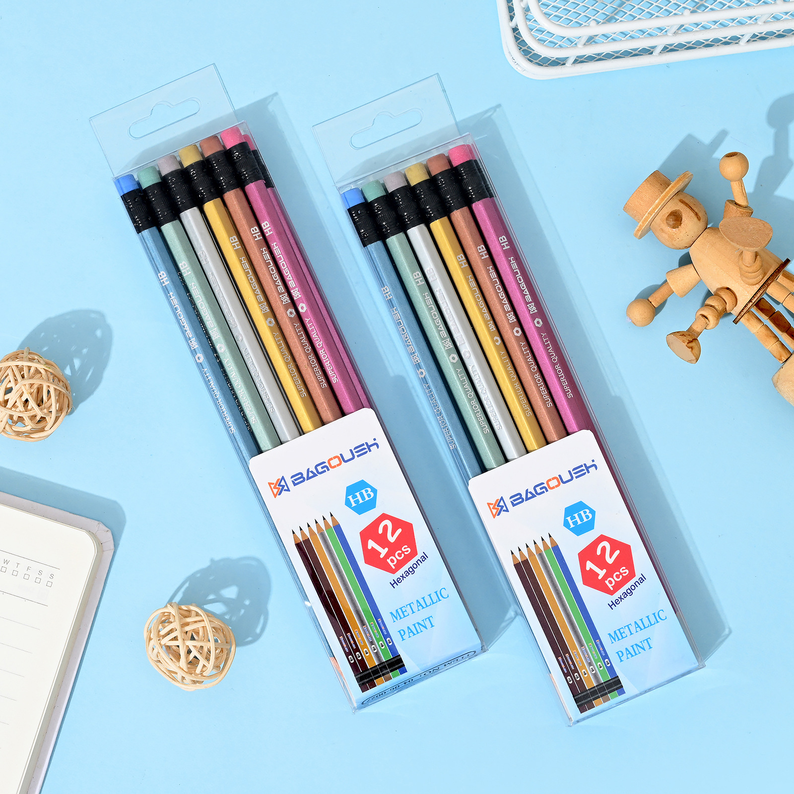铅笔批发金属漆hb铅笔六角杆铅笔小学生专用pvc盒写字笔跨境文具