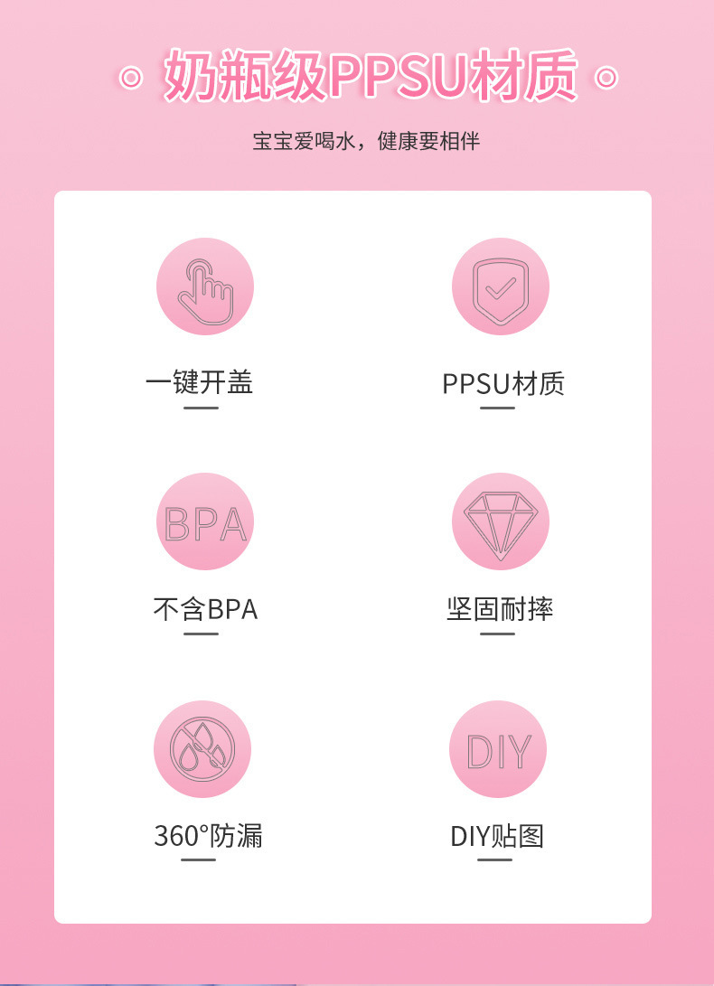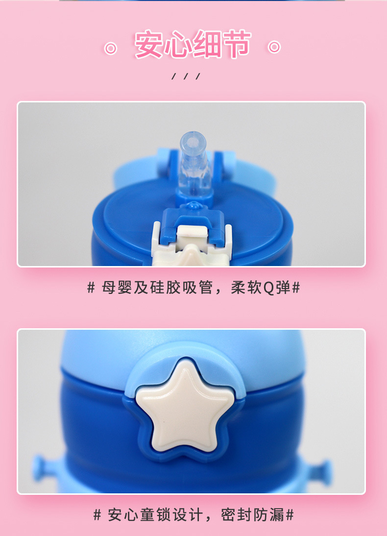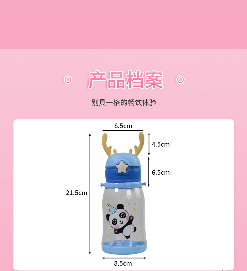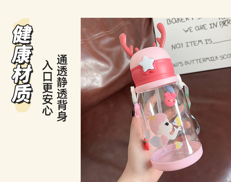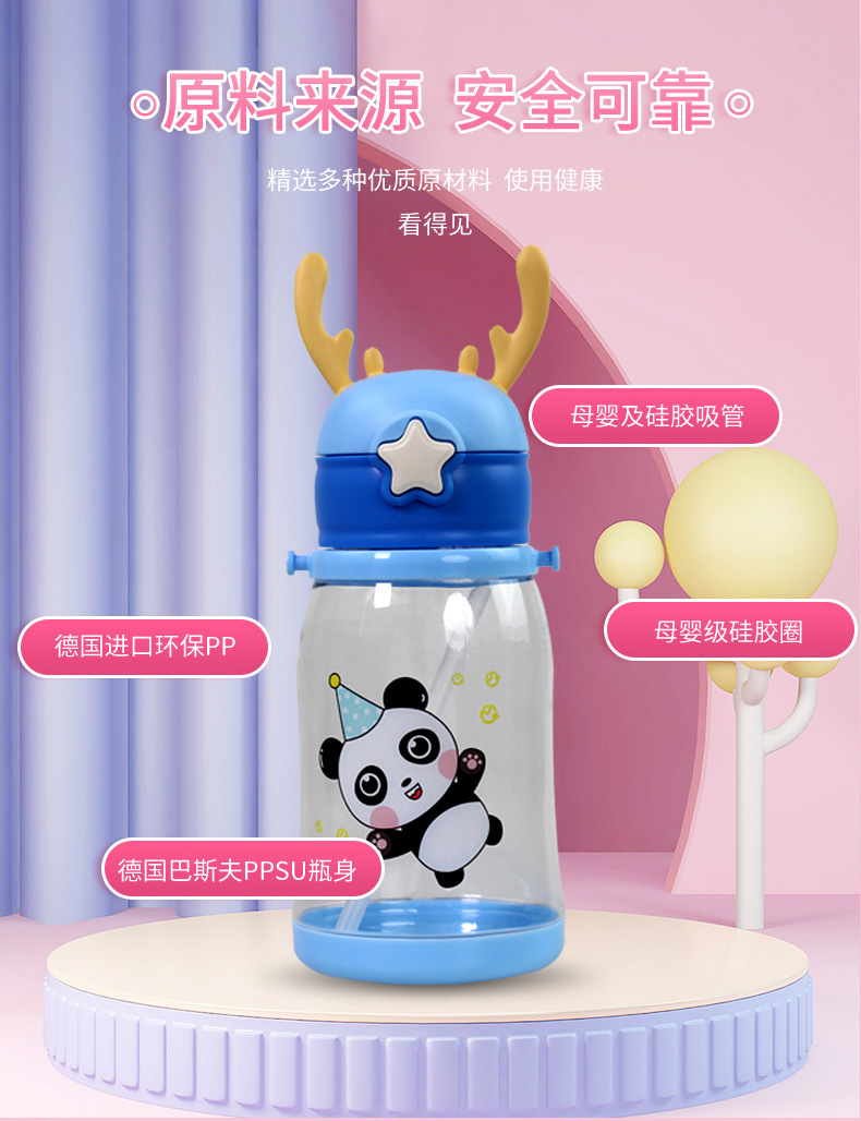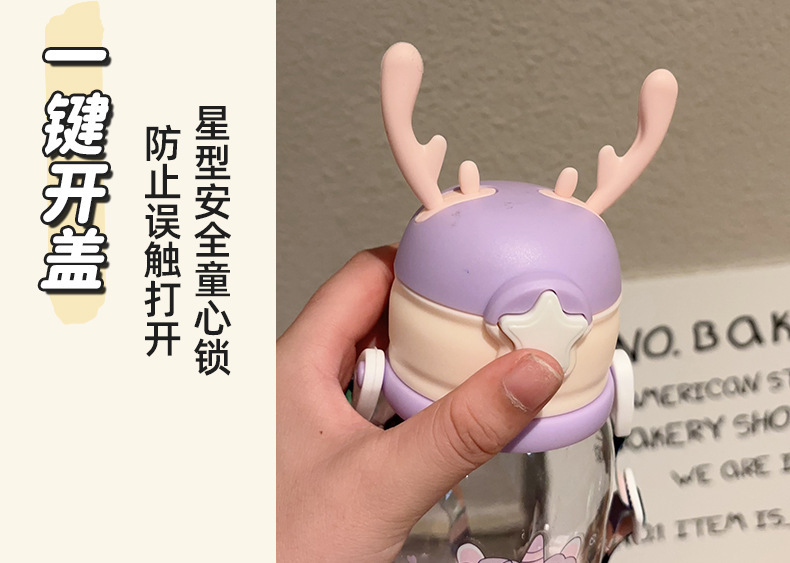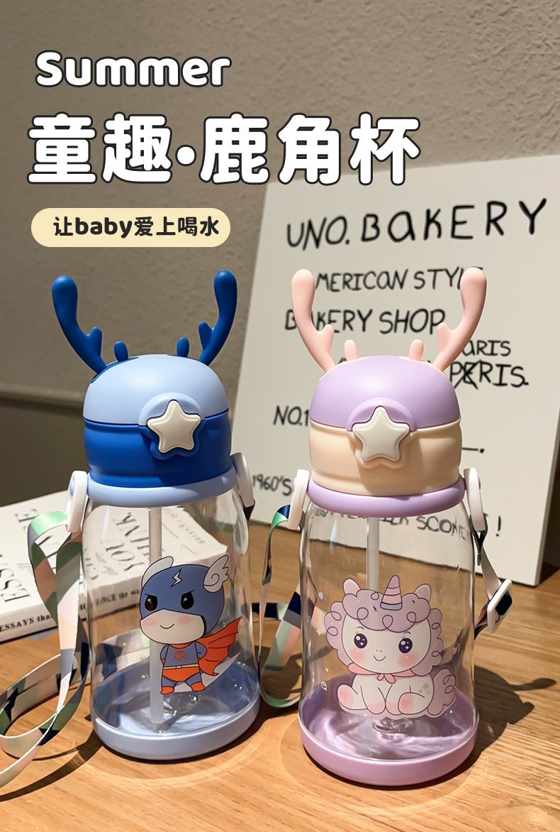 ♔儿童吸管杯学饮杯男女宝宝防漏可爱鹿角水壶小学生防摔便携水杯