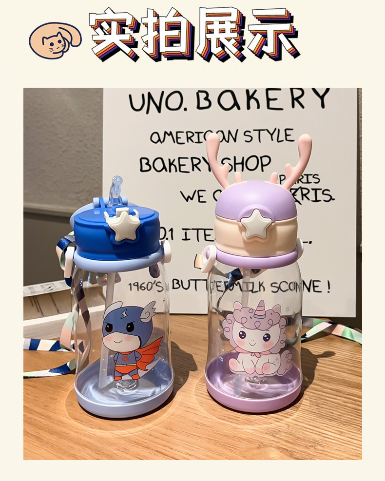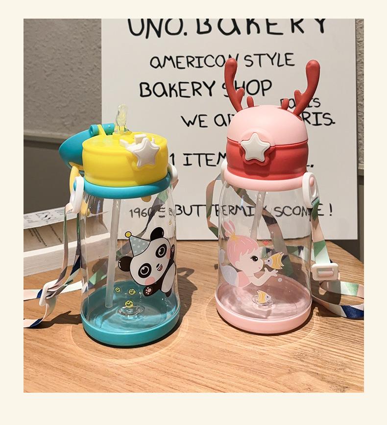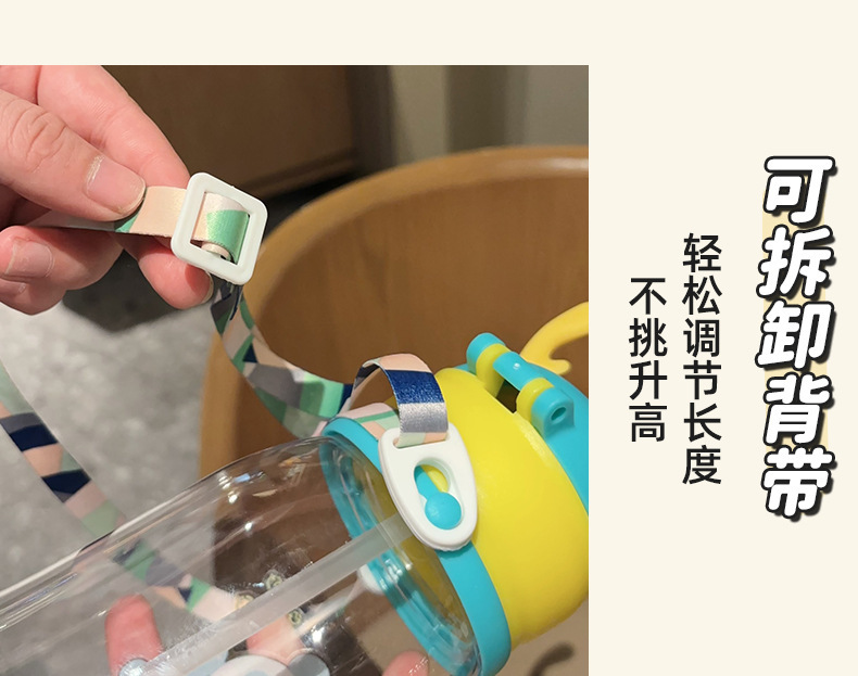 大容量杯子简约儿童可爱幼儿园小学生吸管杯便捷塑料卡通斜挎背带