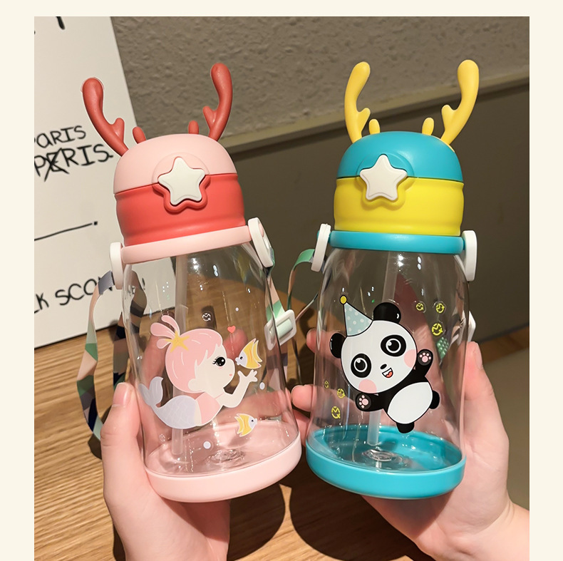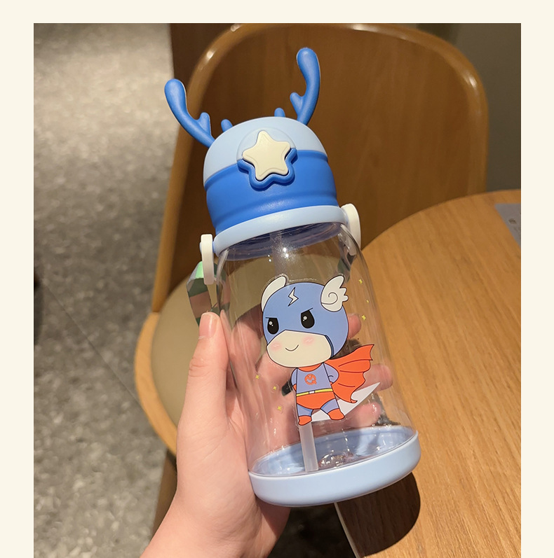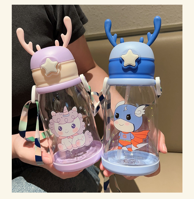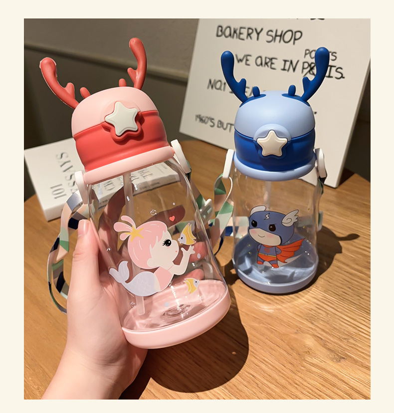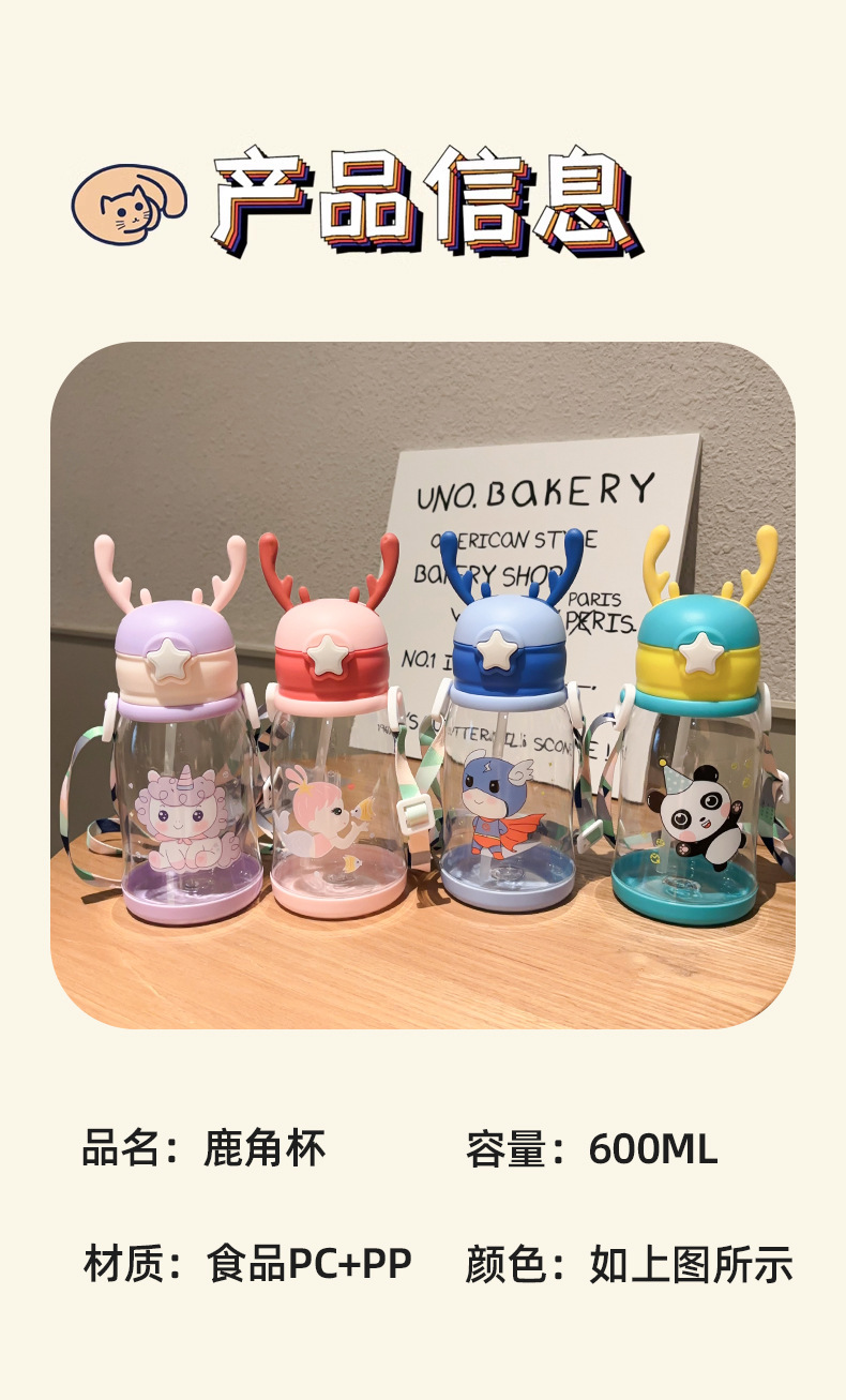 新しいネット赤コップ漫画コップ子供大容量鹿角プラスチックコップ学生プレゼントストローコップはカスタマイズ可能