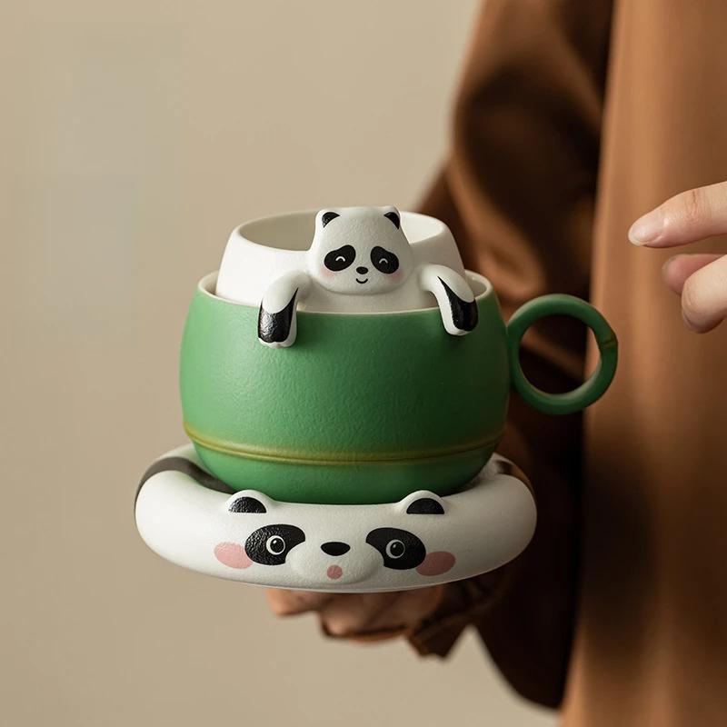 Kanghe パンダティーカップ茶水分離セラミックオフィスカップウォーターカップコーヒーカップセットカップルバレンタインデーギフト