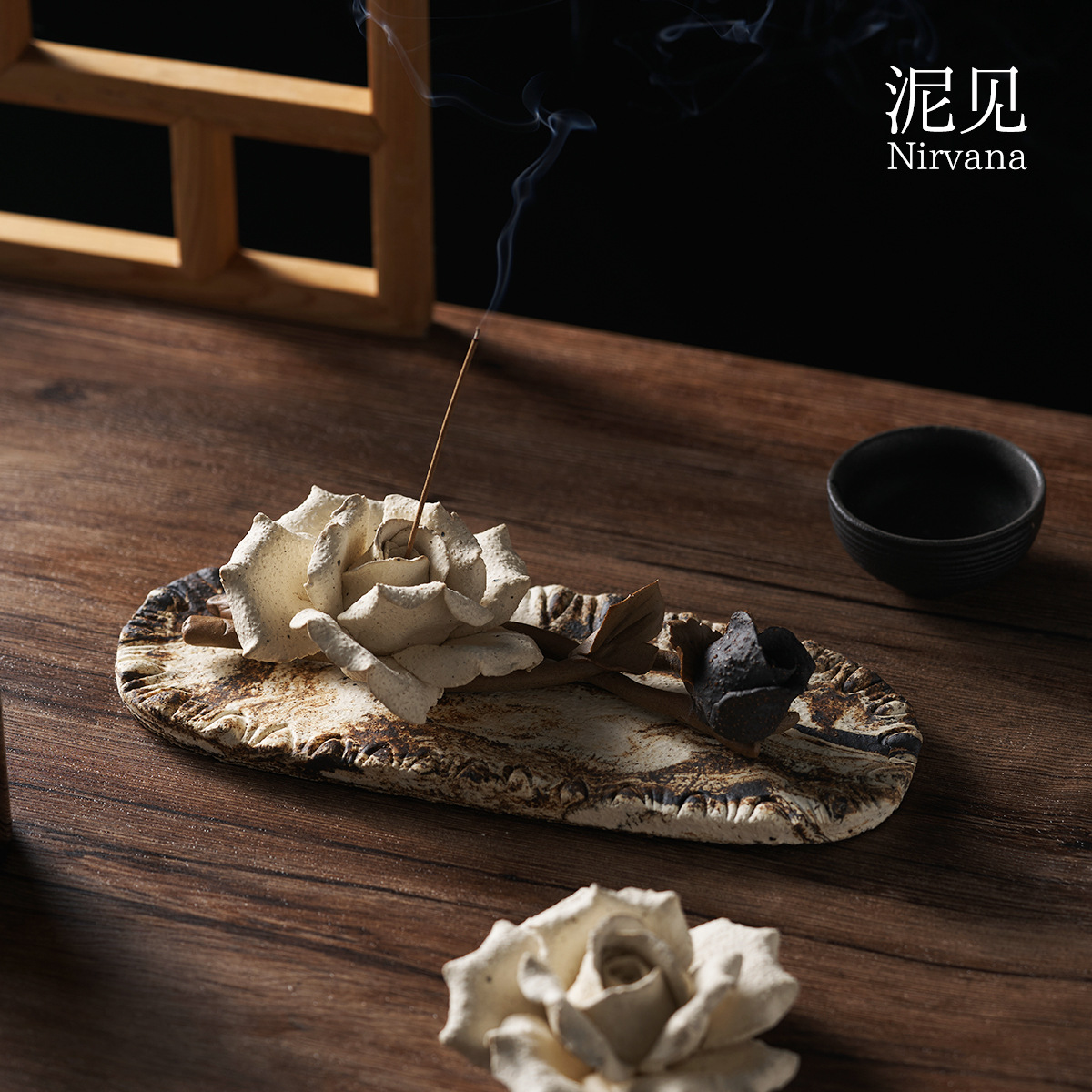 景德镇手工玫瑰花陶瓷线香香插托盘精油扩香非遗手捏陶瓷花礼品