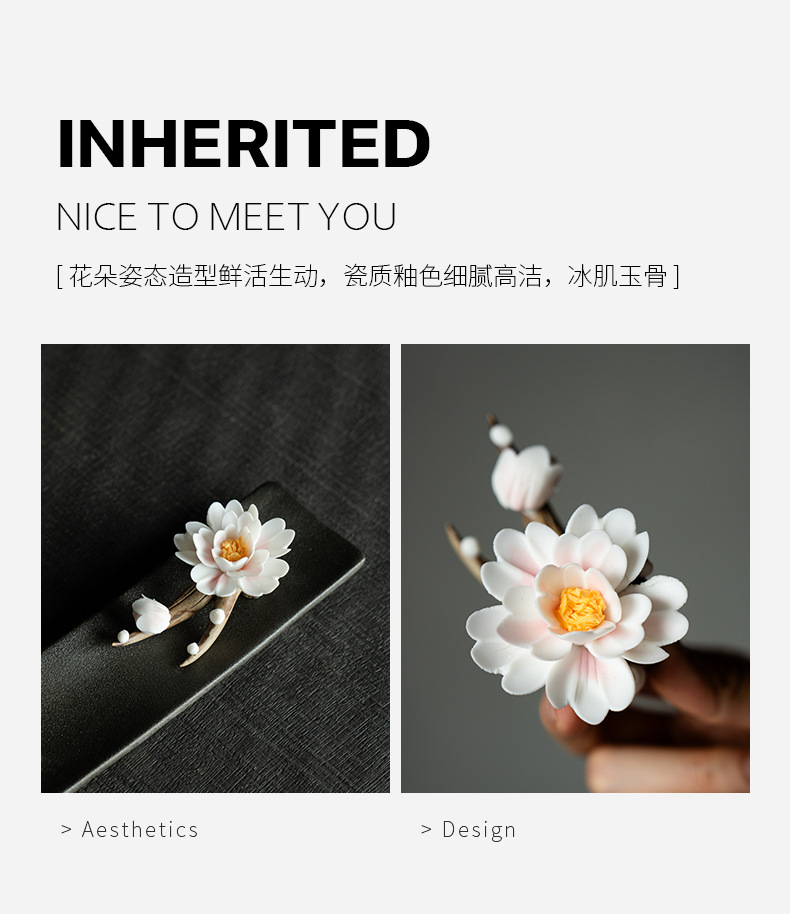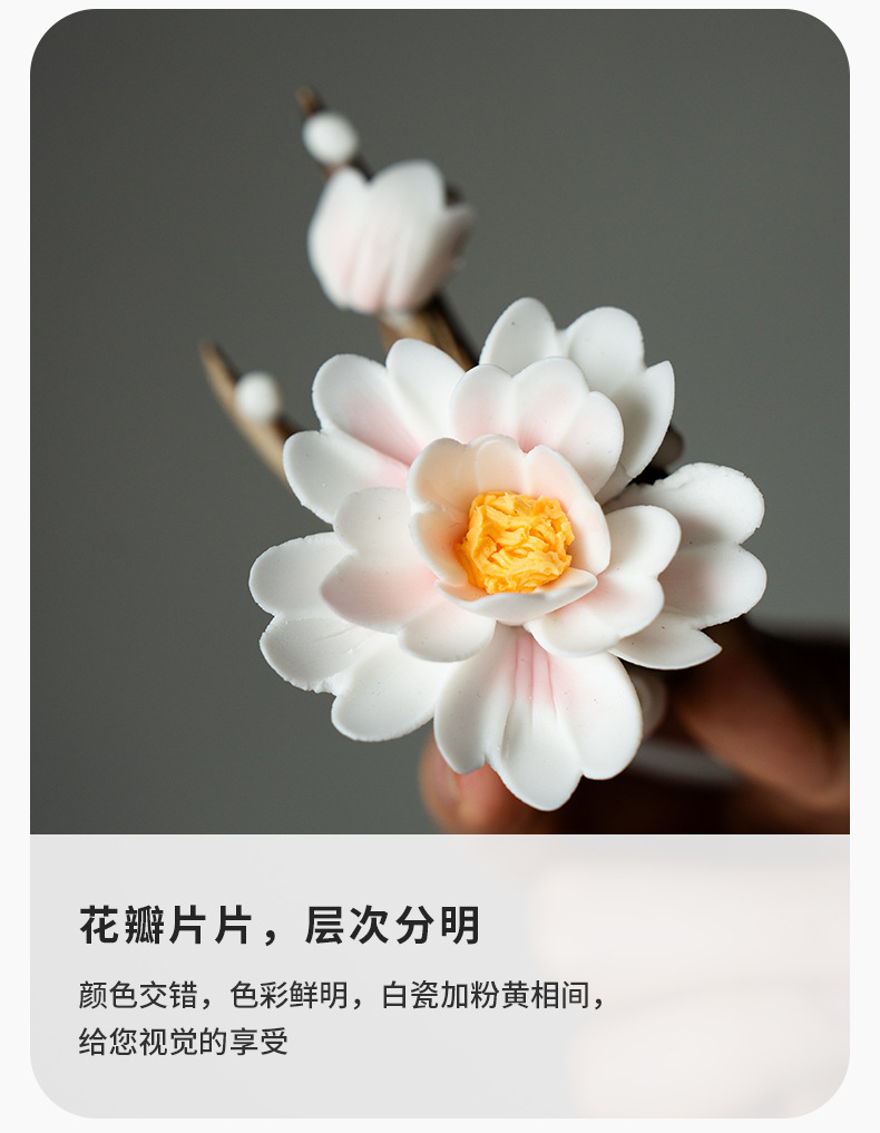 景德镇原创手工创意陶瓷花牡丹花山茶花线香香插扩香器高级感摆件