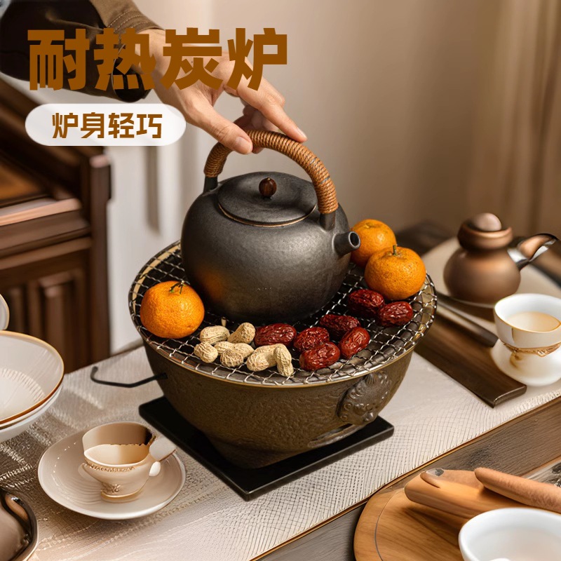 囲炉煮茶炉多機能炭焼き粗陶レトロ焼き皿ストーブ家庭用炭火盆屋外キャンプ